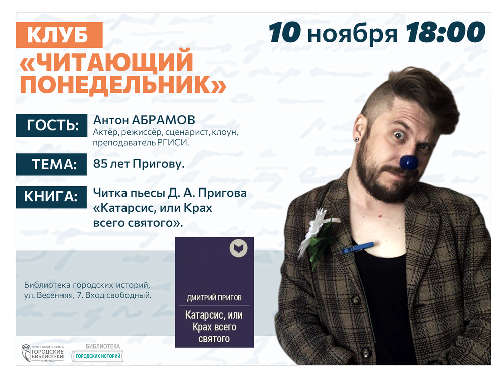 19.11Клуб «Читающий понедельник»: встреча с писателем Павлом Колесниковым в Библиотеке городских историй
