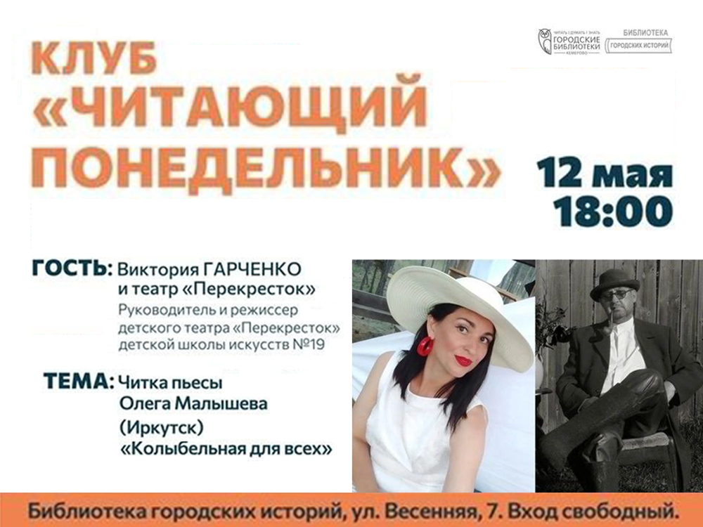 30.01Встреча клуба «Читающий понедельник» с актрисой Кемеровского областного театра драмы им. А.В. Луначарского Екатериной Грибановой.