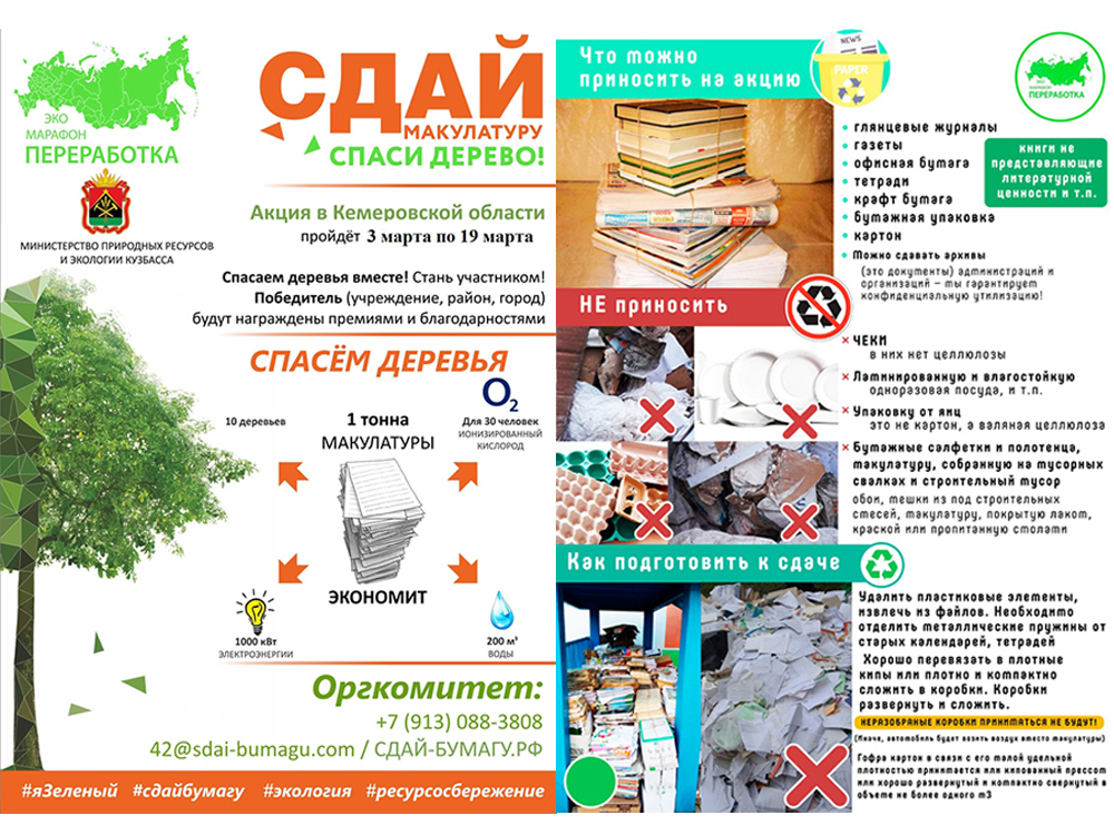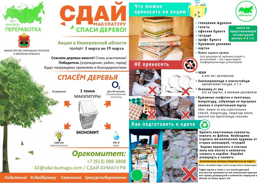 14.02Всероссийский Эко-марафон ПЕРЕРАБОТКА «Сдай макулатуру – спаси дерево».