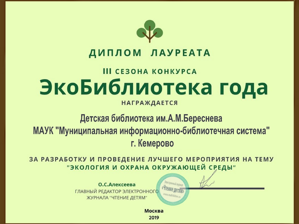 Муниципальные библиотеки г. Кемерово – лауреаты III сезона конкурса «ЭкоБиблиотека года»