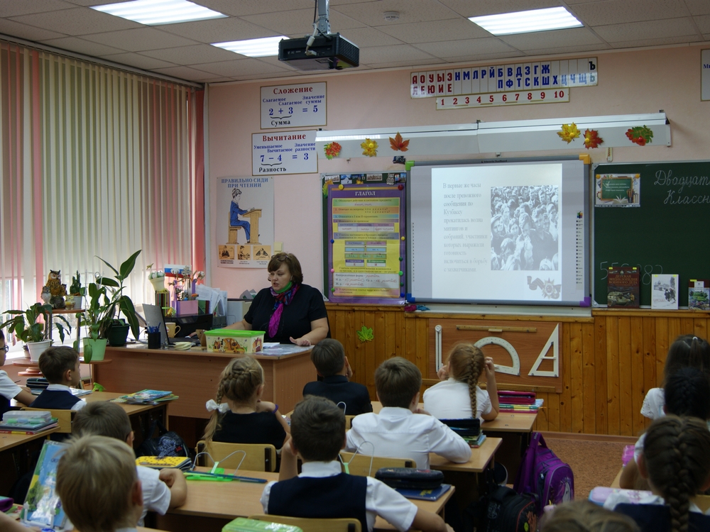 В ходе уроков ребята узнали о датах начала и окончания Второй мировой войны, о героях-кузбассовцах, принимавших в ней участие и не жалевших своих жизней для защиты нашей Родины. Среди них: Вдовин Н. И., Зубов В. Ф., Иванов Э. И., Кизитский М. Т., Миронов Г. Н. и многие другие. Дети в свою очередь с удовольствием рассказали о своих прабабушках и прадедушках, воевавших на фронтах Второй мировой войны.