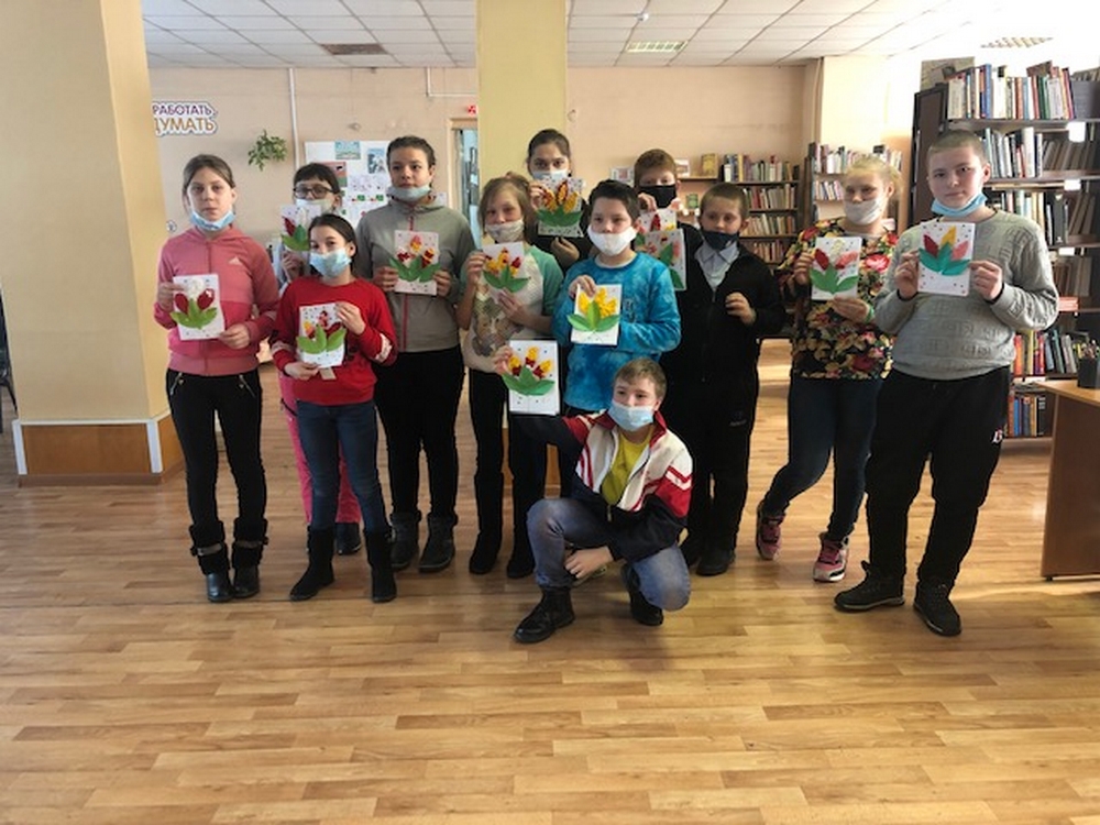 2 марта в библиотеке им. И. М Киселева (ул. В. Волошиной,29) для воспитанников школы интернат №27 прошел мастер‑класс «Подари улыбку маме» приуроченный к международному женскому дню.