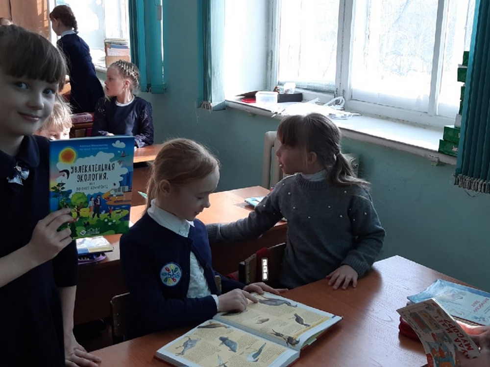 В заключение мероприятия участники полистали книги русских и советских писателей‑природолюбов (В. Бианки, Н. Сладкова, М. Пришвина, В. Распутина, Б. Васильева) и пришли к выводу, что этот прекрасный и необъятный мир очень хрупок и к нему надо бережно относиться.