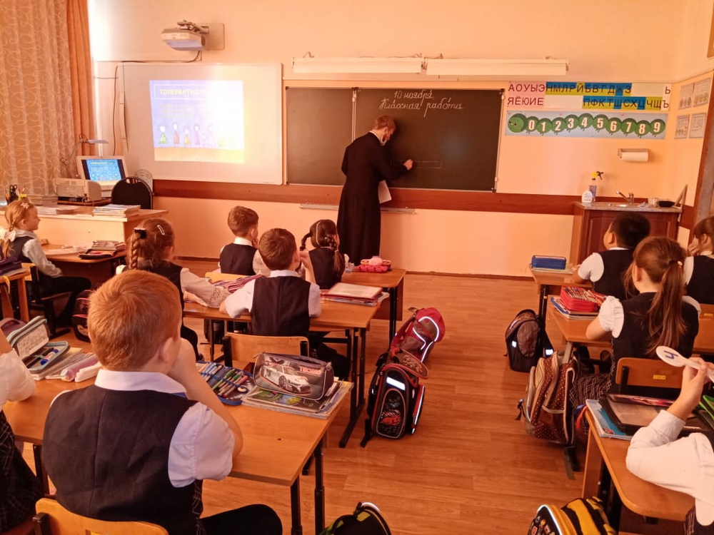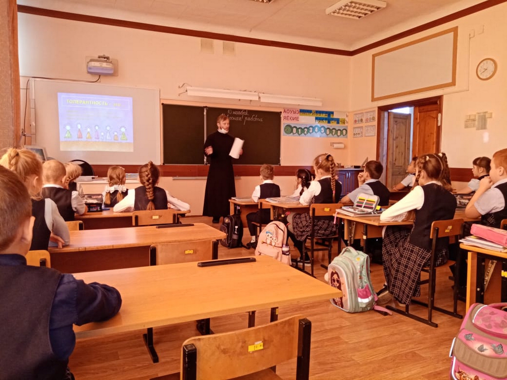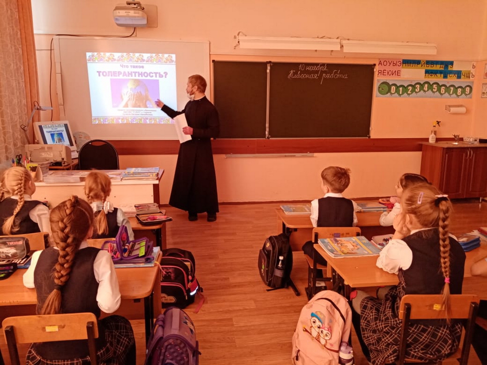 Сотрудники библиотеки совместно со священнослужителем о. Даниилом рассказали детям о терпимости, взаимопомощи, дружбе, доброте и уважении к другим людям. Ребята узнали, как воспитывать в себе взаимоуважение, вежливое общение, способность чувствовать и понимать себя и другого человека.