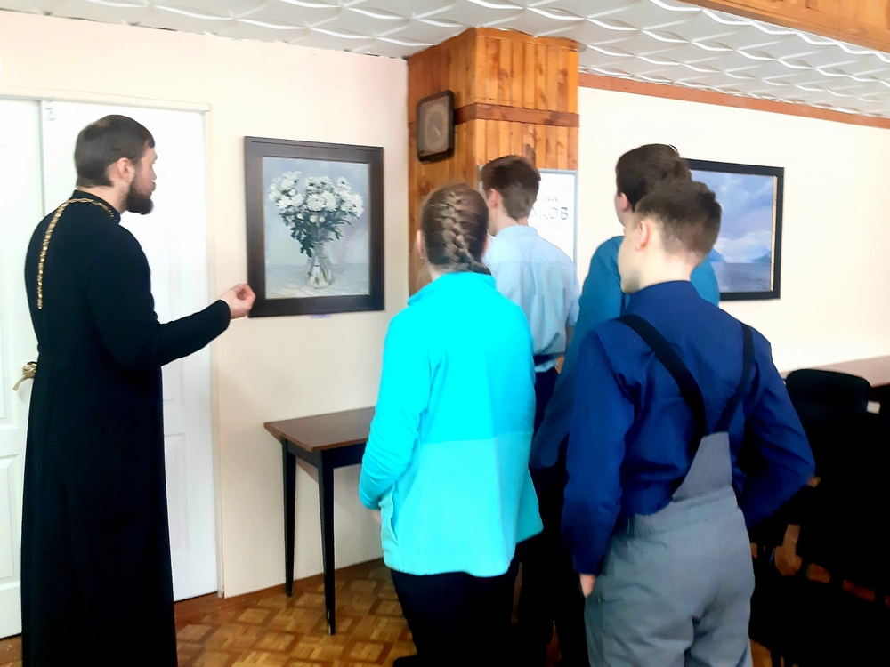 25 февраля в Детской библиотеке им. А. М. Береснева (б-р Строителей, 7) состоялась удивительная встреча учеников общеобразовательной школы психолого-педагогической поддержки № 104 со священником-живописцем Дмитрием Петраковым.