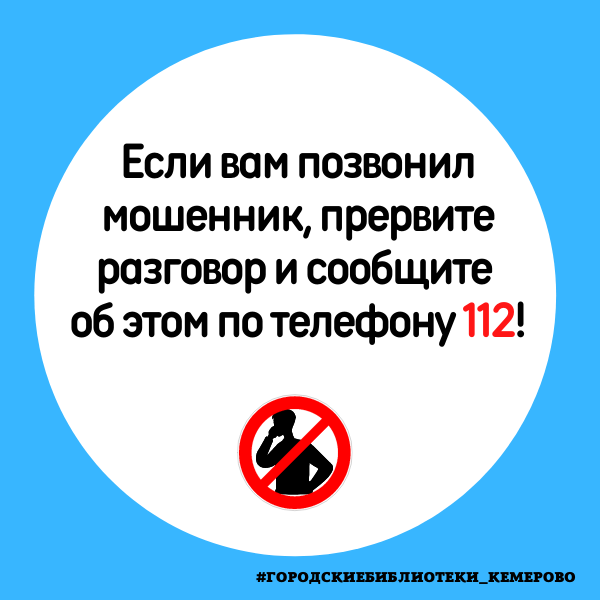 • Если вам позвонил мошенник, прервите разговор и сообщите о покушении на мошенничество по телефону 112;