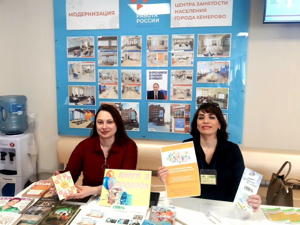 Долгосрочные партнерские отношения связывают систему муниципальных библиотек с Центром занятости населения г. Кемерово. В 2022 году нашими сотрудниками вновь проводятся выездные мероприятия на Ярмарке вакансий.