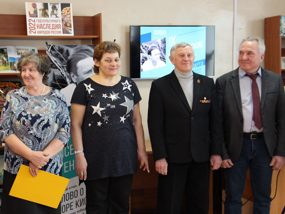 24 марта в Библиотеке им. И. М. Киселёва (ул. В. Волошиной, 29) прошла праздничная программа «Юбилей в кругу друзей», посвященная 65-летию со дня открытия библиотеки. Библиотека начала работу в 1957 году и первые годы носила имя М. Горького. Изначально она находилась на ул. Патриотов, 11 в небольшом помещении, а в 1986 году в новом жилом доме Южного района спроектировали просторное и светлое пространство, в котором библиотека находится и сегодня.В 2004 году библиотеке было присвоено имя кузбасского поэта Игоря Киселёва. Через год открылся музей поэта, здесь же положено начало традиционным Киселёвским чтениям. 65 лет библиотека – настоящий центр чтения, уютный, гостеприимный дом для читателей. Сейчас фонд библиотеки насчитывает более сорока тысяч экземпляров книг. Здесь проходит Ежегодный приём кадет «Честь имею!», много лет работает клуб для пожилых людей «Посиделки», творческая мастерская «Мастерица», литературный клуб-гостиная «Зеленая лампа», кружки «Бодрость», «Дебют», шахматная секция и группа здоровья. Сотрудники библиотеки оформили информационные стенды и выставки, раскрывающие не только книжный фонд, но и историю библиотеки со дня ее основания. Для гостей прошла экскурсия по выставке из фондов Музея-заповедника «Томская Писаница» «Четыре дождя. Поэзия И. Киселёва в контексте работ кузбасских художников». На выставке представлены картины наших земляков, которые удивительным образом переплетаются со стихами Игоря Киселёва. Ознакомиться с экспозицией можно до 15 апреля. Поздравить библиотеку пришли руководители организаций, коллеги, друзья и читатели. С теплыми словами выступила заведующий отделом культуры Управления культуры, спорта и молодежной политики города Кемерово Татьяна Николаевна Гурина. Она вручила сотрудникам библиотеки почетные грамоты и благодарственные письма. Поблагодарил за добросовестный труд и вручил поздравительный адрес сотрудникам депутат Кемеровского городского Совета народных депутатов Александр Александрович Курасов. Директор МАУК «Муниципальной информационно-библиотечной системы» Лилия Александровна Смирнова поздравила работников с юбилейной датой библиотеки и наградила благодарственными письмами. С музыкальными номерами выступили ученики Детской школы искусств № 14. Украшением праздника стало поздравление Совета ветеранов Заводского района г. Кемерово. Добрые слова прозвучали в адрес библиотеки от коллектива Государственного архива Кузбасса, кадет Губернаторской кадетской школы-интерната МЧС, поэтов, членов Союза писателей: Б. В. Бурмистрова, Д. В. Мурзина, Е. И. Тюшиной. Круглый стол «Слово о поэте Игоре Киселёве» собрал почитателей его творчества на IX Киселёвские чтения с праздничным чаепитием, воспоминаниями и чтением стихов. Мы благодарим всех, кто с такой теплотой и вниманием относится к нашей библиотеке! Мы работаем для вас! Пока есть читатели – библиотека будет жить!