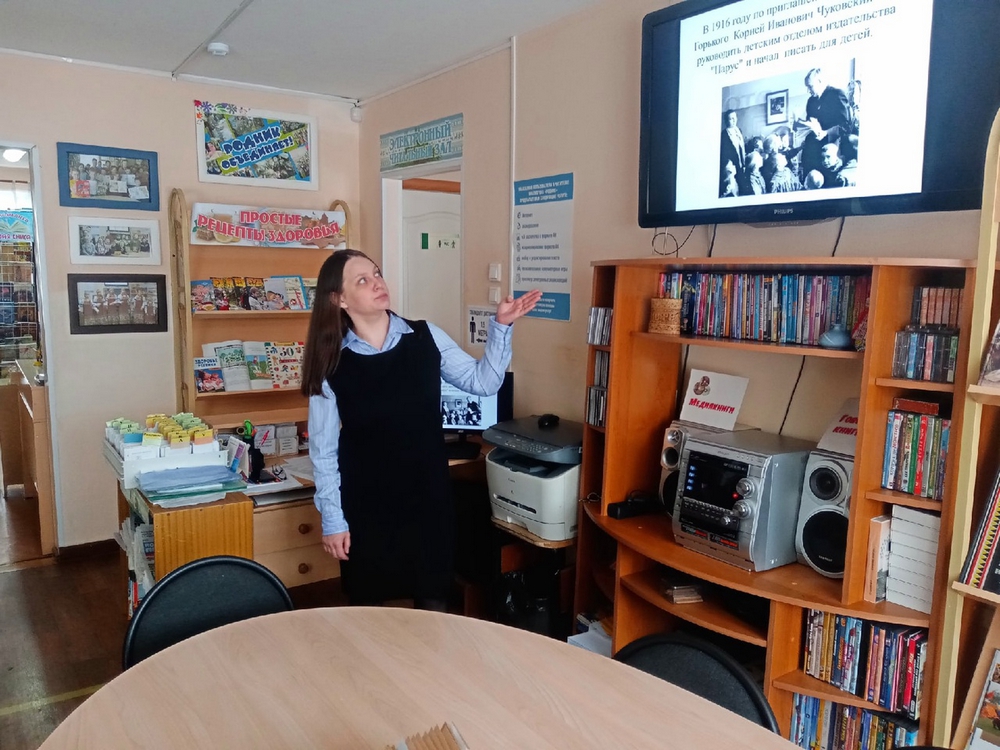 31 марта в Специализированной библиотеке по обслуживанию детей с ограниченными возможностями здоровья «Родник», в рамках проведения Недели детской книги и 140-летия К. И. Чуковского, для юных читателей была организована интерактивная игра «Чудо-дерево». В начале мероприятия ребята познакомились с биографией писателя и узнали о его трудном детстве, об истории написания первой сказки «Крокодил». Ребятам было предложено вспомнить все сказки дедушки Корнея, где героями являются крокодил, тараканище, добрый доктор Айболит и другие. Юные посетители разгадывали веселые остроумные загадки, которые сочинил К. И.Чуковский, а затем поиграли в занимательную игру «Доскажи словечко», где из предложенных строчек нужно было назвать сказку. Дети с удовольствием посмотрели мультфильм «Мойдодыр» и за активное участие получили сладкие призы.