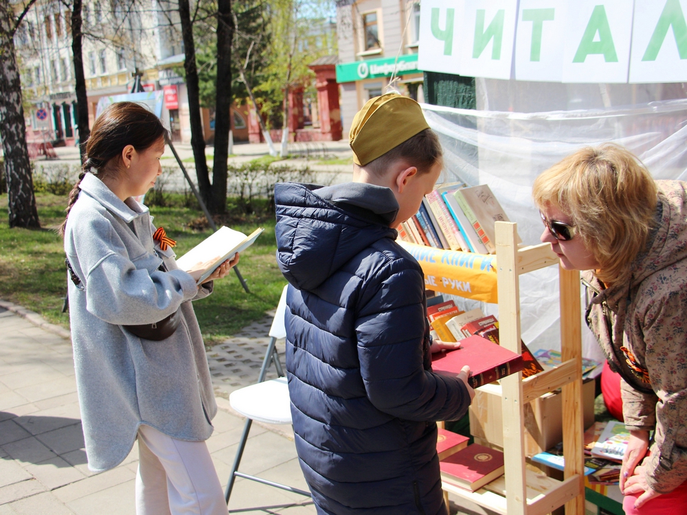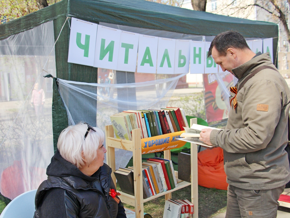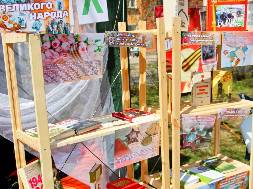 9 мая сотрудники кемеровских городских библиотек организовали для гостей «Книжный привал», где разместились читальный зал в светлом шатре с мягкими креслами, книжная выставка «Великая победа Великого народа» и книжный развал «Хорошие книги в добрые руки».