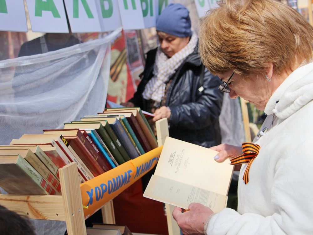 Кемеровчане с удовольствием выбирали себе на память книги о войне с книжного развала, историческую и классическую литературу, а маленькие читатели получили в дар детские книги и журналы.
