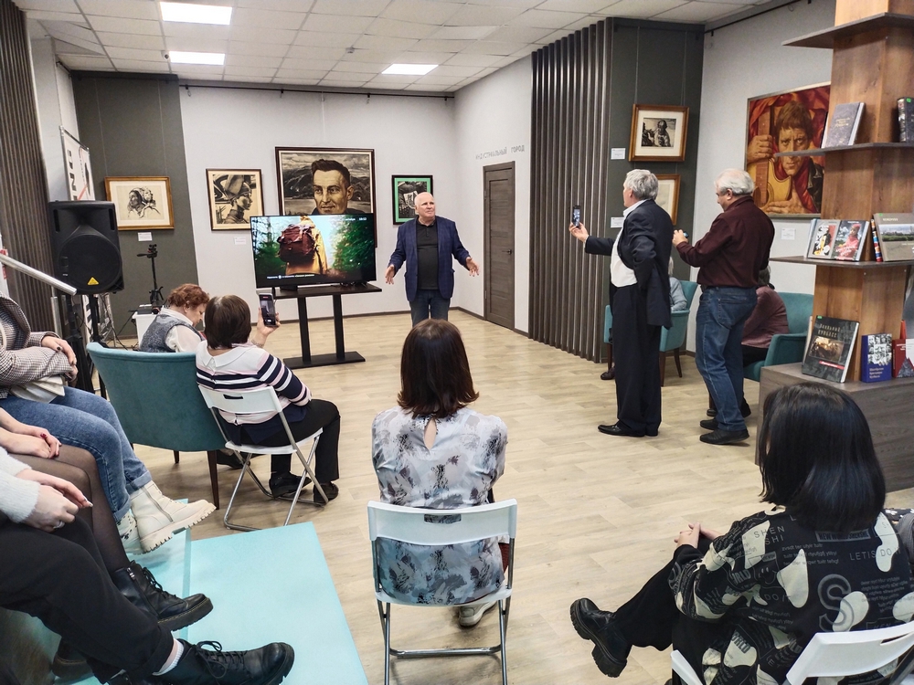 17 октября в Библиотеке городских историй (ул. Весенняя, 7) состоялось открытие выставки «Пою моё Отечество» художника-графика, мастера портретной живописи Германа Порфирьевича Захарова. Он широко известен как первый художник, создавший образ первооткрывателя кузнецкого угля Михайло Волкова. Часть его работ хранится в Шушенской галерее, в музее В.М. Шукшина, Новокузнецком музее Достоевского, Музее-Заповеднике «Красная горка», в Краеведческом музее Ленинска-Кузнецкого. Организатором выставки выступил известный в Кузбассе фотограф, историк Владимир Надь. На открытии присутствовали близкие люди Захарова: дочь Вероника Германовна, друзья и ценители его творчества. Вероника Германовна рассказала, что ее отец не заканчивал художественного вуза и его знают, как самодеятельного художника. У него никогда не было холста, мастер писал свои работы на крафте: картоне, фанере, упаковочной бумаге. Иногда вместо кистей он использовал щепочки или творил голыми руками. Библиотека городских историй неразрывно связана с личностью Захарова. Именно здесь впервые видели свет новые работы художника, когда библиотека еще называлась «Филиал №1» Библиотечной системы для взрослых». «Он входил в библиотеку, высоко держа новую картину. Он, знаете ли, был физически сильным человеком. И вот потом к картинам стекался весь наш коллектив. Это было событие!» – отметила Раиса Сергеевна Гурышева, заслуженный работник культуры Российской Федерации, бывший директор взрослой библиотечной системы. Основное внимание художник уделял жанру портрета. Он изобразил Владимира Высоцкого, которого так любил, поэта-фронтовика Евгения Буравлёва, поэта Василия Федорова, писателя Василия Шукшина и других знаковых персонажей нашей культуры. Среди его работ выделяют и иллюстрацию к произведению «Слово о Полку Игореве». Алексей Петрович Патшин, основатель Музея одной книги «Слово и полку Игореве» отметил, что именно Захаров как никто другой прочувствовал смысл произведения и создал удивительные образы героев слова. О личности Захарова, его неиссякаемом желании творить даже в застойные годы поведал известный кузбасский журналист и фотограф Григорий Трофимович Шалакин. Выставка нашла отклик в сердце и у молодого поколения. Юные участники молодёжного общественного движения «Молодёжка ОНФ» посетили мероприятие и послушали об истории создания каждой картины. Экспозиция «Пою моё Отечество» пробудет в Библиотеке городских историй до 2 ноября. Вход свободный.