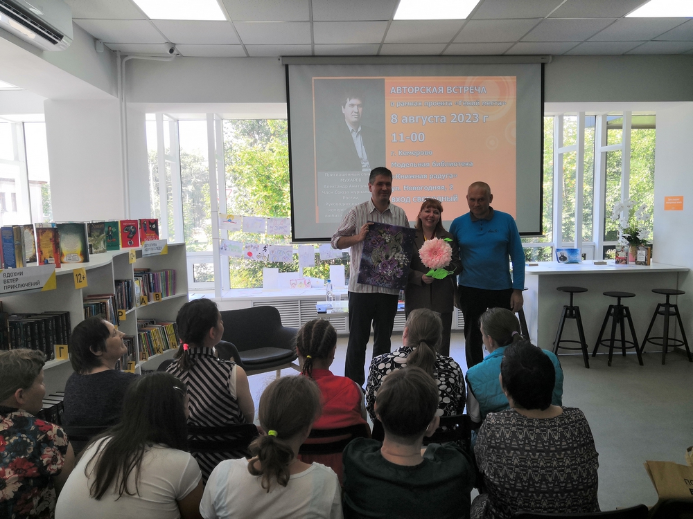 8 августа библиотека «Книжная радуга» встречала почетного гостя Члена Союза журналистов России, Руководителя системы кемеровских клубов любителей фантастики, а также главного редактора журнала «Фантастика 42» Мухарева Александра Анатольевича.