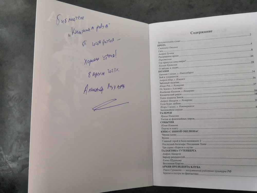 Александр Анатольевич презентовал номер журнала «Фантастика 42», который с большим удовольствием мы приняли в подарок. И совсем скоро, после присвоения номера и библиотечной обработки, он появится в фонде нашей библиотеки!