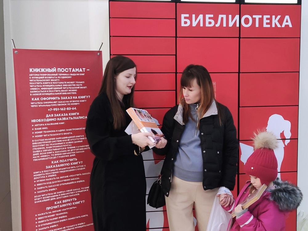 Затем аудитория прослушала информацию о способах заказа книг через книжный постамат, книжных новинках, сроках доставки и многом другом. Завершилась акция раздачей листовок с инструкцией, о том, как воспользоваться услугами постамата.