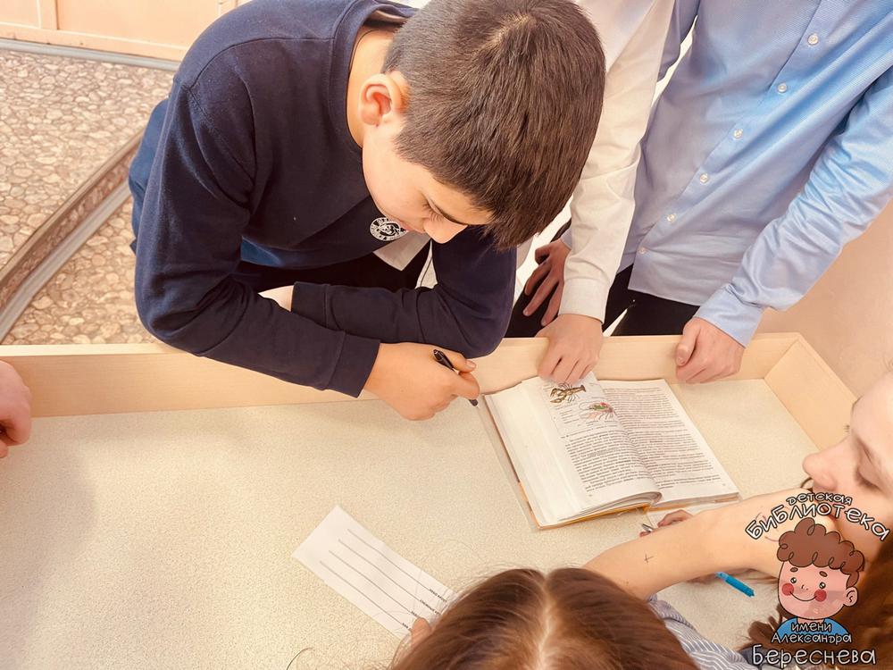 Темой встречи в рамках данной программы для семиклассников из СОШ №77 стала беседа «Сатира М. Е. Салтыкова-Щедрина в иллюстрации и на экране», которая проведена 19 декабря сотрудниками Детской библиотеки им. А. М. Береснева. Школьники взглянули на творчество сатирика с разных ракурсов глазами художников-иллюстраторов и режиссеров-мультипликаторов. Узнали отличия сатиры и юмора и выбрали подходящие смайлы-эмодзи для каждого из понятий!