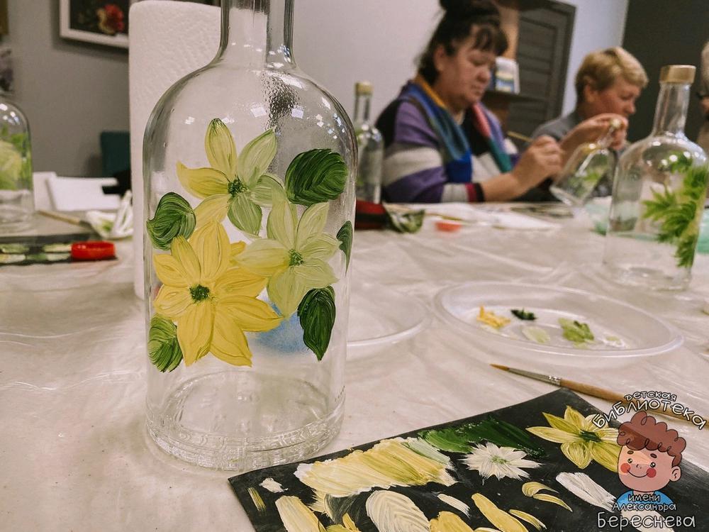 Сначала немного «сухих» фактов: 30 января в Библиотеке городских историй прошел мастер-класс народного мастера Российской Федерации и Кузбасса – Спекторовой Надежды Анатольевны. А теперь к эмоциям. На мероприятии побывала ведущий библиотекарь Диана Александровна Богачук и вот, что она рассказывает: «Вчера мне посчастливилось побывать на удивительном мастер-классе по Кемеровской росписи. Как человеку рисующему, мне было интересно попробовать себя и в таком виде творчества. И знаете, что я вам скажу? Это невероятно сложно! С маслом я работала впервые. Материал для меня совсем не знакомый, да еще и рисовать пришлось на стеклянной бутылке! Но! Результат не стыдно показать, потому что все бывает в первый раз. Надежда Анатольевна покорила всех своим мастерством. Показала, как делать самые простую роспись, рассказала о нюансах и истории Кемеровской росписи. «Увлекательно, интересно и необычно!» – вот девиз вчерашнего дня. А организовали эту потрясающую атмосферу талантливые ребята из Идентичный Кемерово, за что им огромное творческое спасибо!»