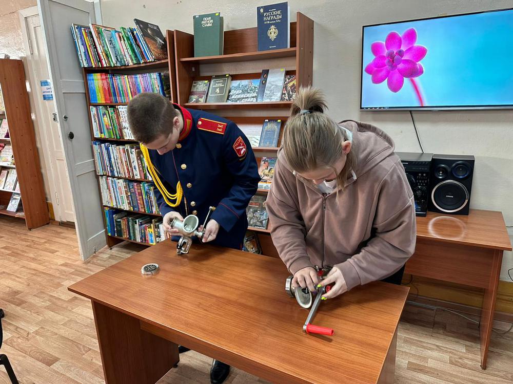 Для участников мероприятия библиотекари приготовили викторину и спортивно-развлекательные испытания, благодаря которым школьники познакомились с некоторыми особенностями армейской службы. Кадеты ответили на вопросы зрителей о жизни в школе-интернате, рассказали о своих увлечениях и планах.