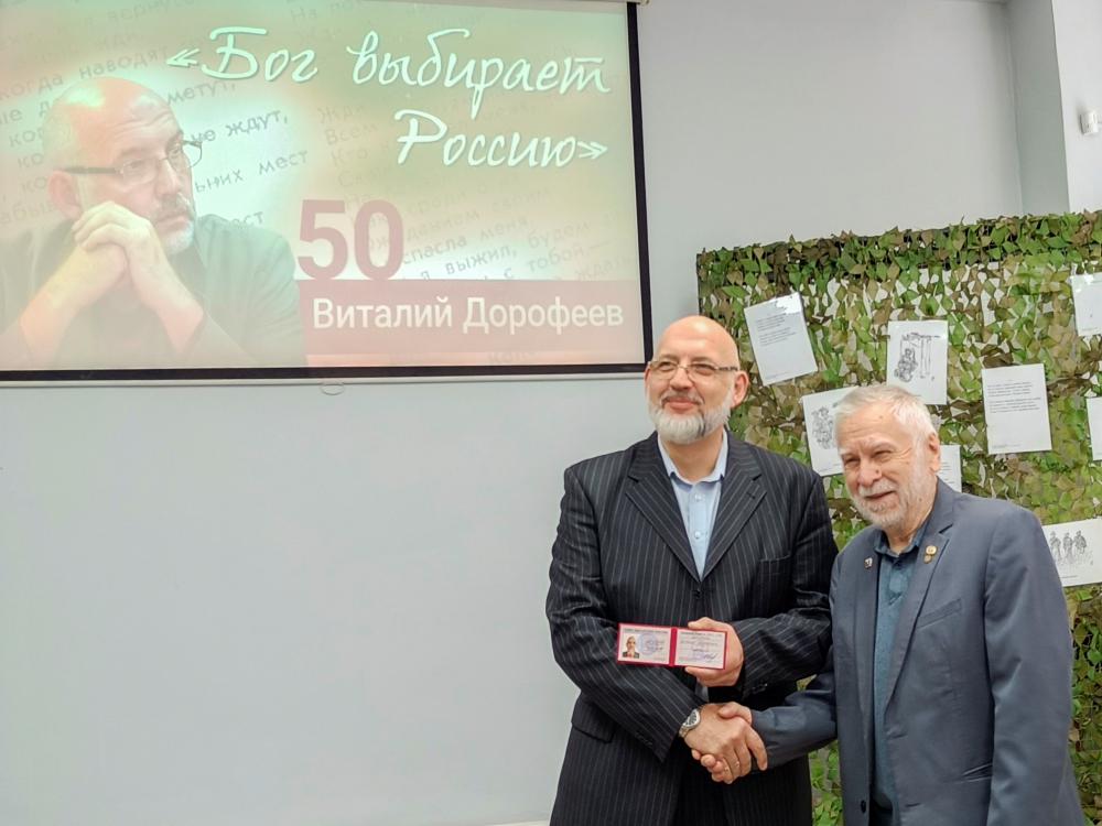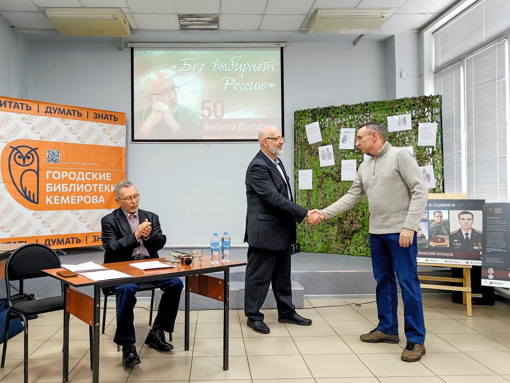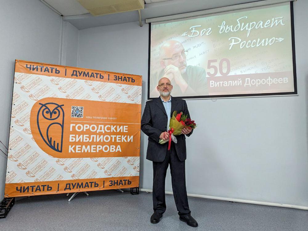 Сегодня, 2 апреля, в городской Библиотеке имени Н. В. Гоголя (пр. Ленина, 135) прошла встреча с кузбасским поэтом, автором пьесы «Позывной – Куzбасс» Виталием Дорофеевым. На открытом заседании литературной студии «Свой голос» собрались друзья, коллеги и читатели, чтобы поздравить Виталия Валерьевича с 50-летним юбилеем и торжественно вручить билет Союза писателей России.