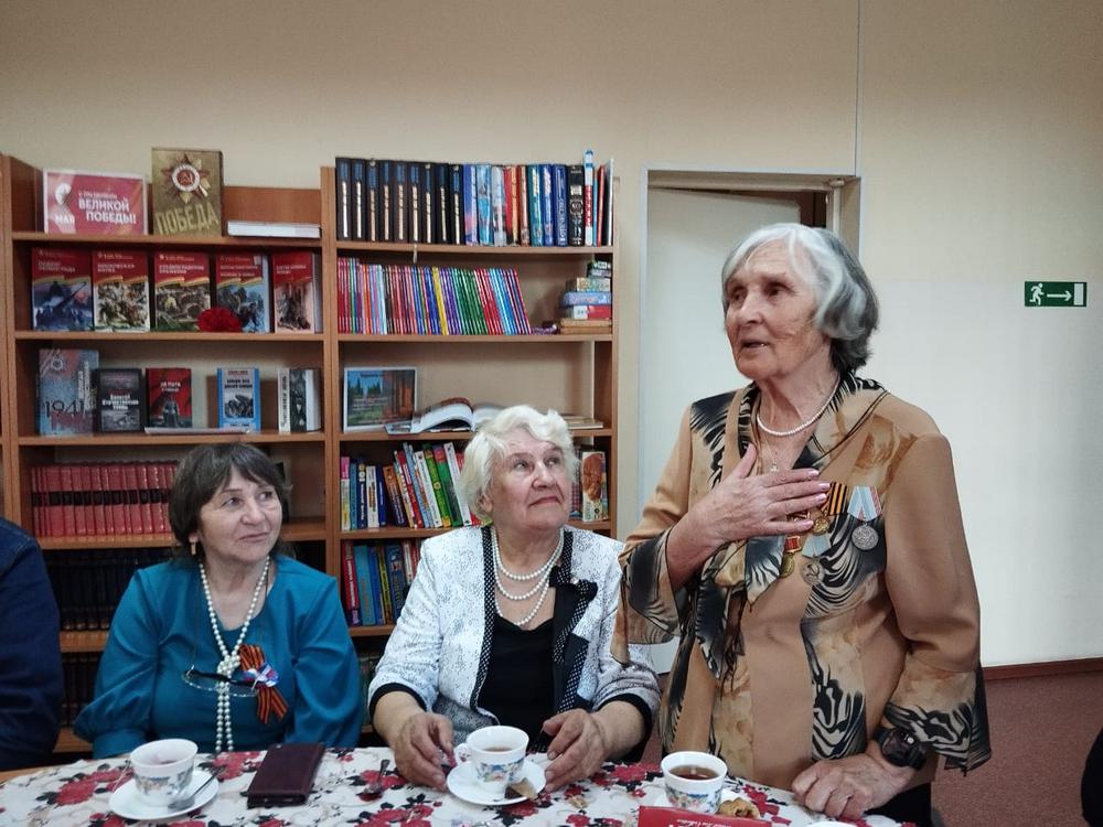 Сотрудники библиотеки провели мини-викторину «Угадай фильм о войне» используя отрывки военных песен, ветераны разгадывали ребусы и  загадки, прозвучали стихи собственного сочинения, воспоминания о ветеранов, очевидцев тех страшных событий, а затем пели всем знакомые песни военных лет и задорные частушки под аккомпанемент Владимира Викторовича Суполкина.