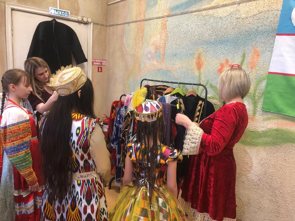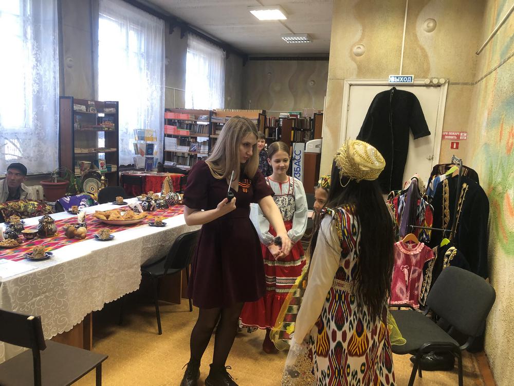 Участники клуба рассказали о своих традиционных костюмах: что носят женщины, а что надевают девушки, как наряжают на праздник детей. Ребятам рассказали, почему каждый костюм расшит и украшен по-разному, почему только женщины носят украшения из золота, что означают узбекские четки и многое другое.