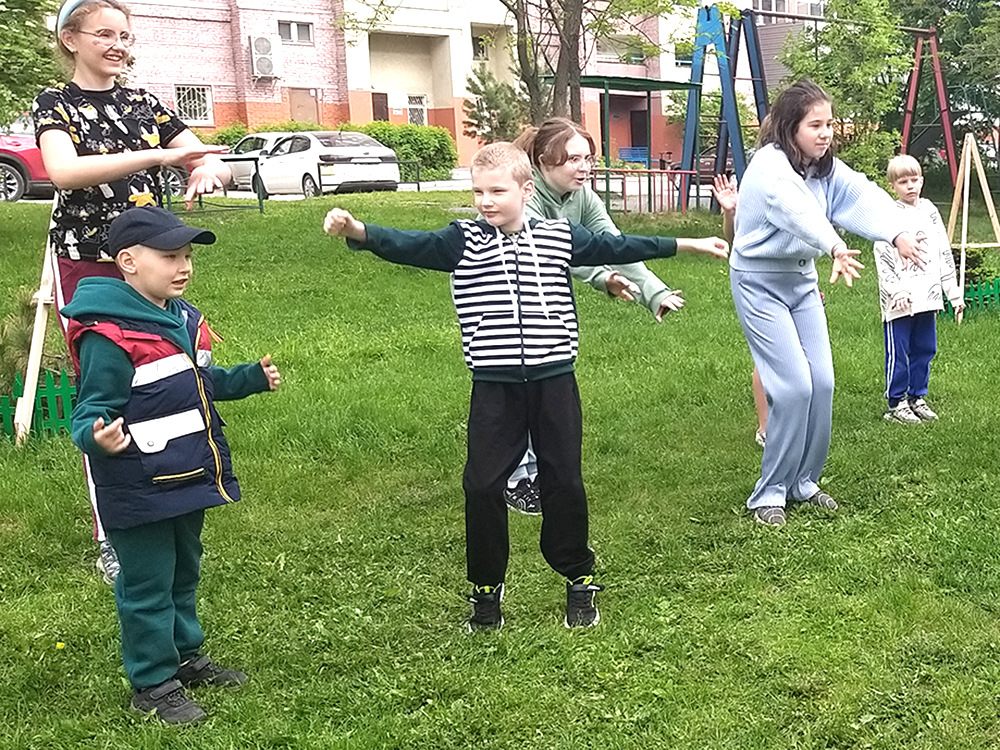 20 июня 2024 года юные читатели Детской библиотеки «Сибирячок» приняли участие в танцевальном флешмобе «Бодрое утро» в рамках ежегодной областной Недели жизни и позитива, которая в этом году проходит под названием «Энергия ЛЕТА». На дворовой площадке ЦРН «Молодежный» (ул. Тухачевского, 45а) ребята дружно под музыку из мультфильмов, снятых по мотивам литературных произведений (например, «Я на солнышке лежу» по сказке Сергея Козлова), выполняли танцевальные упражнения, которые показывали библиотекарь и сотрудник ЦРН «Молодежный». Постепенно темп наращивался, а движения ускорялись, ребята очень старались успеть сделать нужные упражнения.
