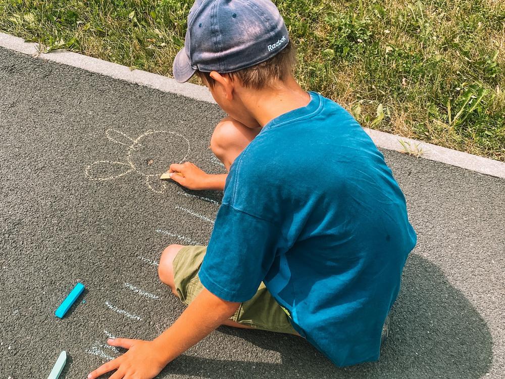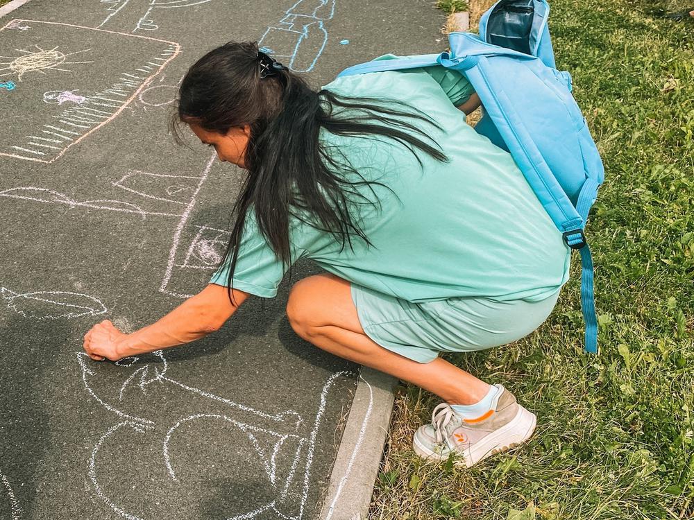 Самые активные еще успели порисовать на асфальте. Ведь именно сегодня – День рисования на асфальте. Рисунки получились летними, теплыми и очень милыми.
