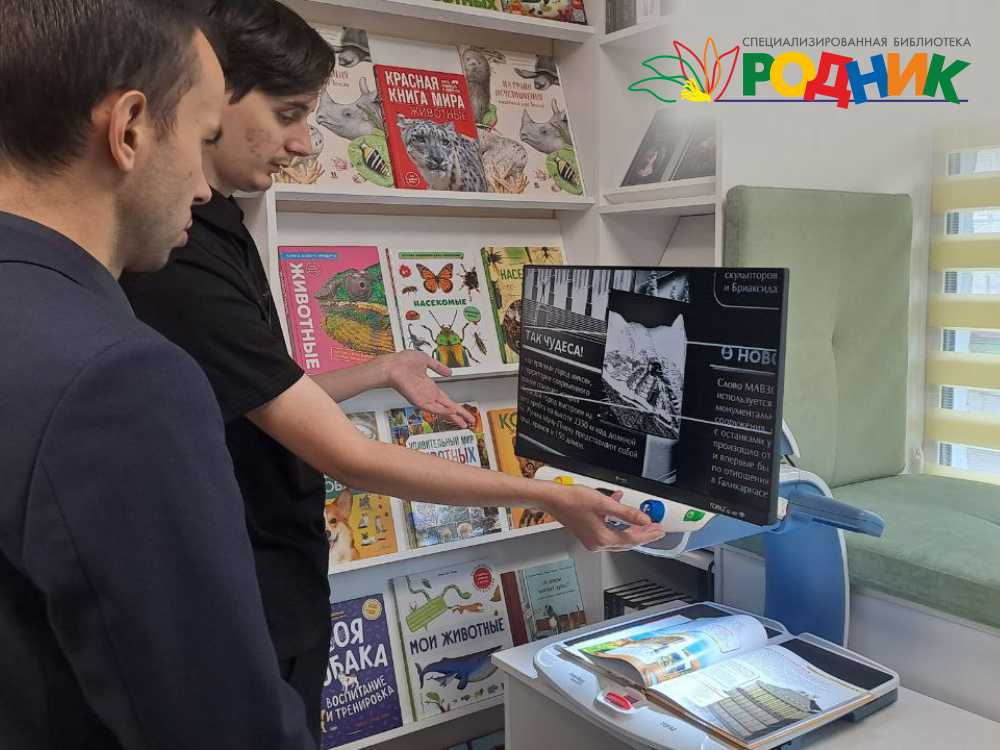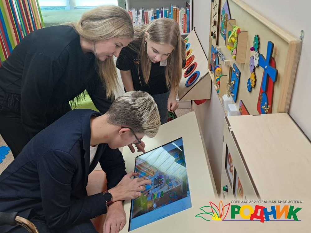 Сотрудники библиотеки «Родник» провели для гостей экскурсию по обновленным залам, продемонстрировали возможности технического оснащения, в том числе оборудование для слабовидящих, обновлённый книжный фонд, разнообразное сенсорно-дидактическое оборудование для детей с особыми образовательными потребностями.