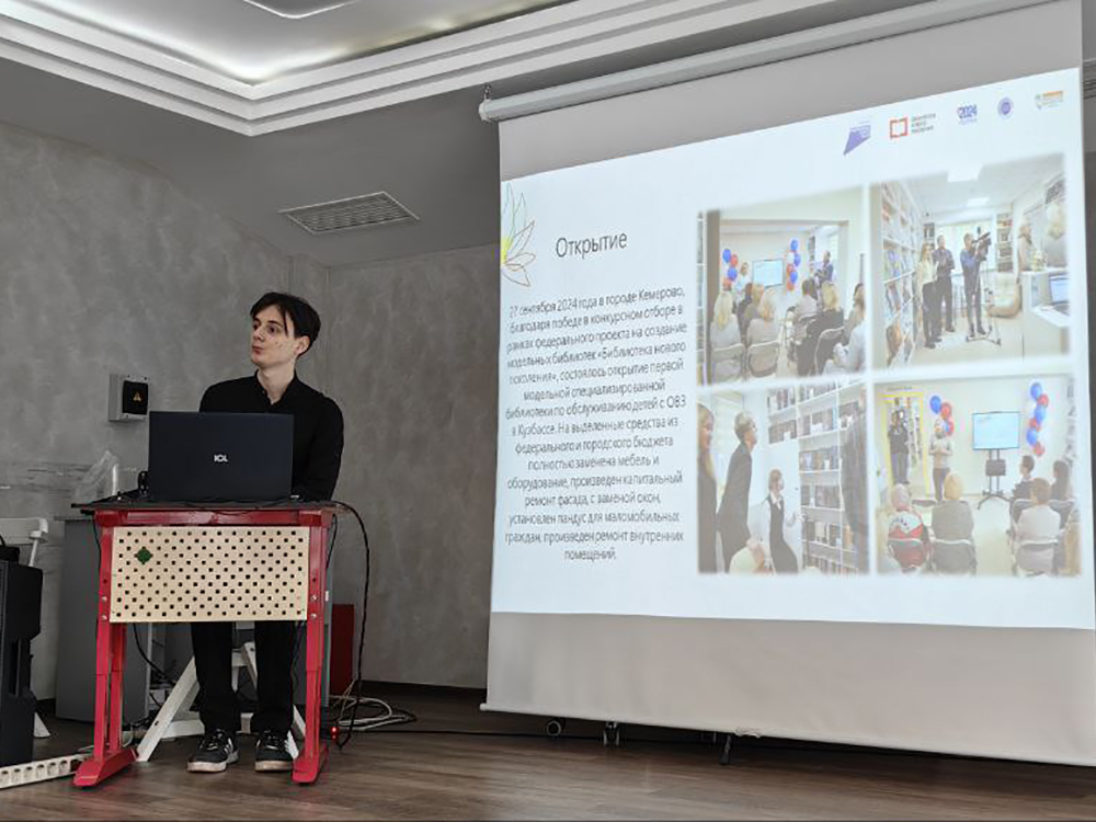Билибин Вадим Сергеевич, библиотекарь 2 категории презентовал открывшуюся недавно после ремонта Специализированную модельную библиотеку по обслуживанию детей с ОВЗ «Родник». Вадим рассказал об интерактивном оснащении библиотеки для удовлетворения потребностей «особых» читателей. В свою очередь, Сизова Лариса Валентиновна, заведующий библиотекой, пригласила всех присутствующих на экскурсию по модельной библиотеке.