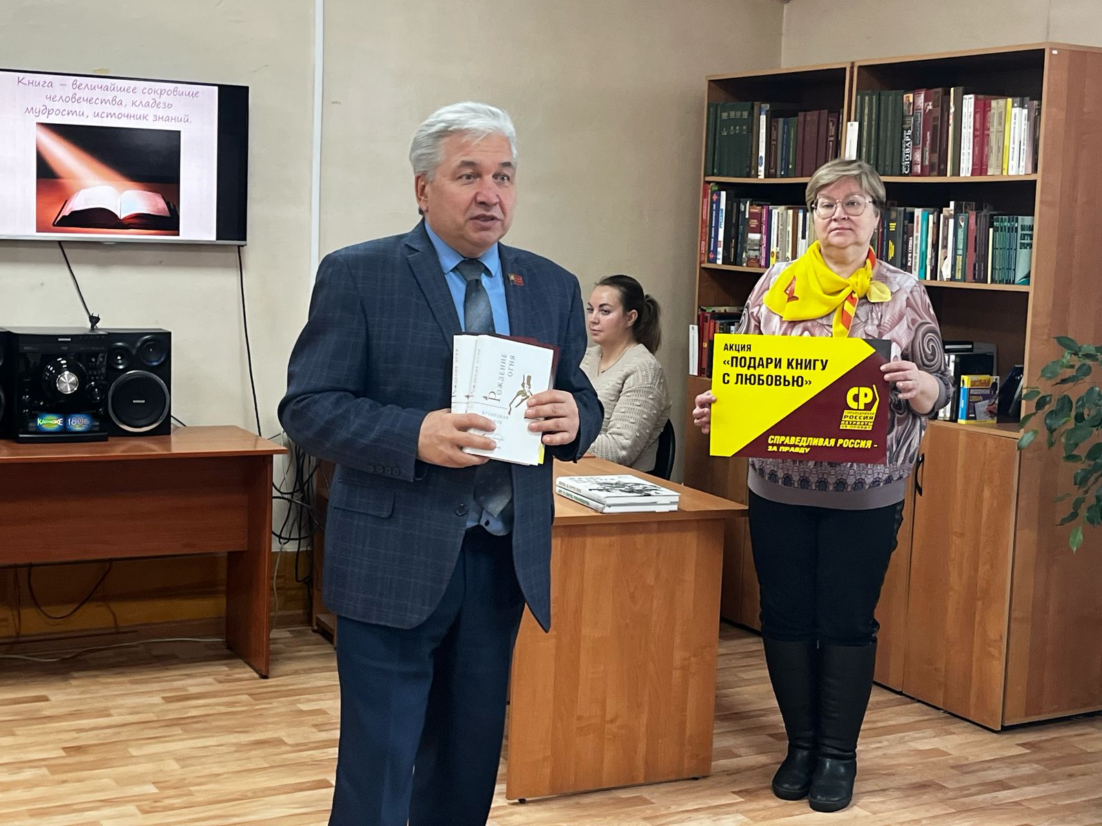 Заместитель председателя Парламента Кузбасса, председатель комитета по делам ветеранов, социальной политике и здравоохранению,  председатель Совета регионального отделения Социалистической политической партии «СПРАВЕДЛИВАЯ РОССИЯ – ПАТРИОТЫ – ЗА ПРАВДУ» в Кемеровской области Скворцов Юрий Петрович подарил библиотеке уникальные сборники «Жизнь за други своя» и «Нет уз святее товарищества». В них собраны воспоминания и рассказы солдат, сержантов, офицеров и военкоров, участвовавших и участвующих в СВО, а также родственников погибших воинов.