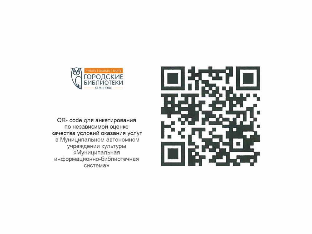 Уважаемые пользователи и читатели! Предлагаем оценить качество услуг, предоставляемых МАУК «Муниципальная информационно - библиотечная система» г. Кемерово. Заполните анкету. Ваше мнение позволит улучшить качество нашей работы.