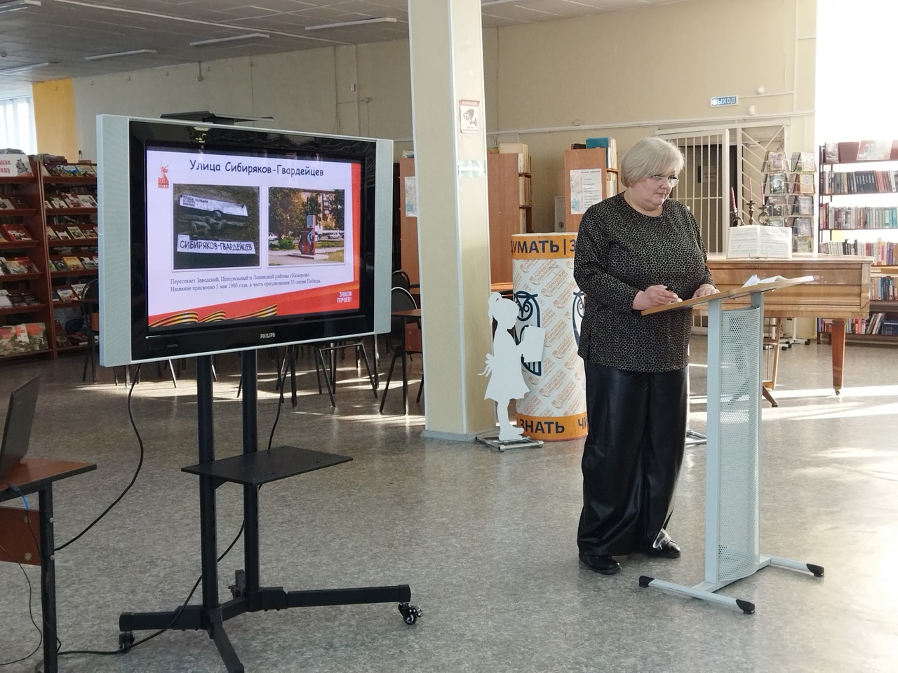 20 февраля в Библиотеке им. Н.В. Гоголя для учащихся школ прошел урок-экскурсия по памятным местам Ленинского района. Ребята виртуально посетили улицы, которые носят имена героев: Степана Харитоновича Марковцева, Климента Ефремовича Ворошилова и улицу Сибиряков-Гвардейцев. Упомянули также улицу Волгоградскую и Ленинградский проспект. При рассказе про «Памятник в честь защитников блокадного Ленинграда» вспомнили о событиях в блокадном городе, узнали о создании «Мемориала Воину-освободителю» и истории «Танка Т-34-76», Мемориальном комплексе «Свет Памяти» и других памятных местах Ленинского района города Кемерово