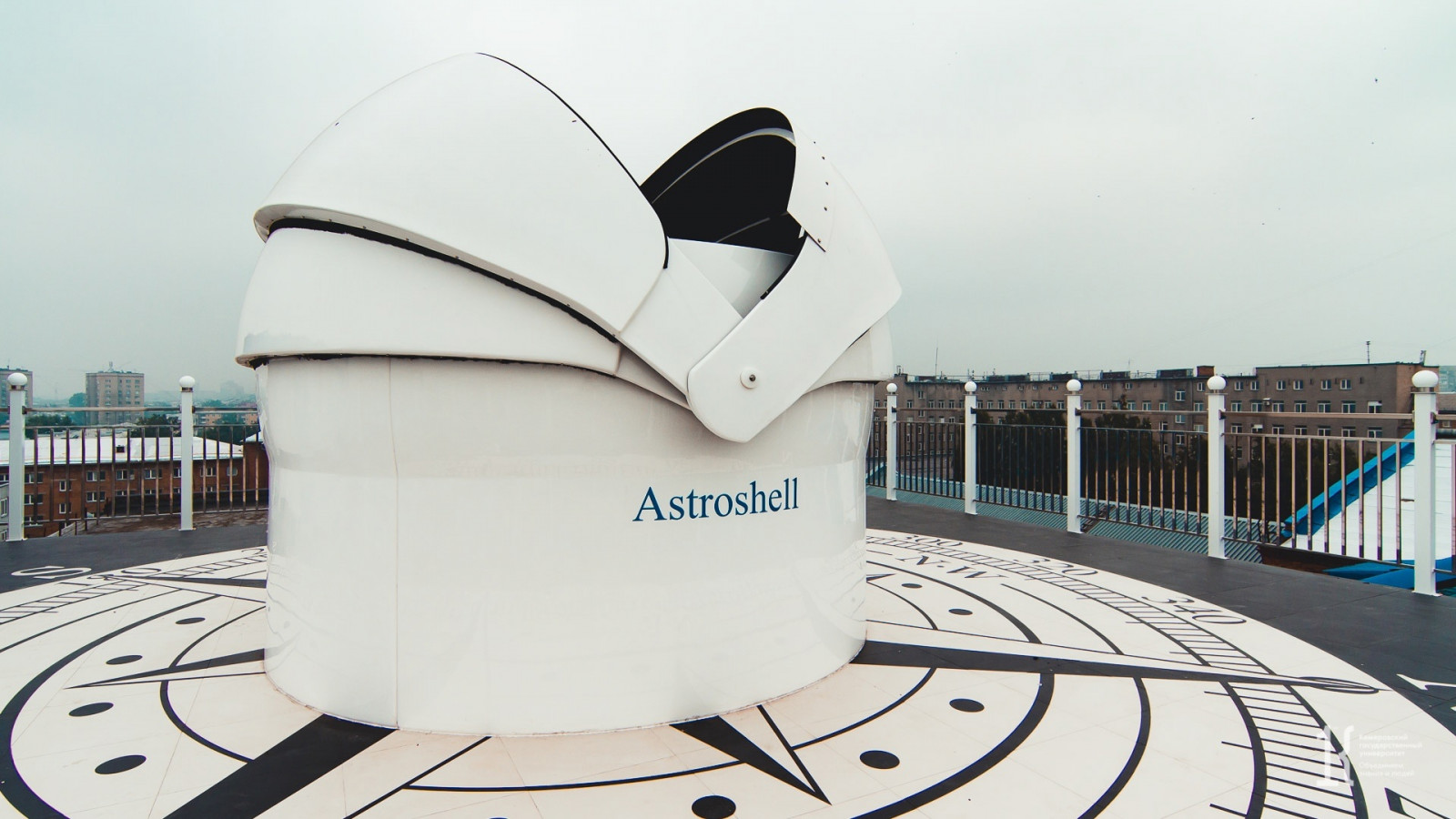 Диаметр купола – 5,3 метра. На крыше планетария размещена обсерватория с раздвижными створками, в которой установлен технологичный телескоп Celestron Nexstar Evolution 9.25.
