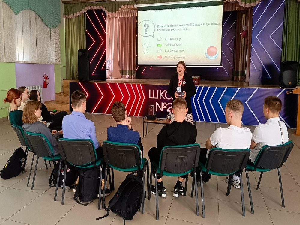 7 мая состоялось увлекательное мероприятие для учеников МБОУ «СОШ №26»— интерактивная литературная игра, основанная на бессмертной пьесе Александра Сергеевича Грибоедова «Горе от ума». Что было интересного? - Участники игры познакомились с персонажами знаменитой комедии благодаря современным технологиям – и герои были представлены оригинальными иллюстрациями, созданными искусственным интеллектом. - Проверка знания цитат — юные читатели узнавали знаменитые реплики персонажей из экранизаций и сценических постановок, вспоминая монологи Чацкого, Софьи и Фамусова. - Интрига вечера заключалась в загадочном задании с черным ящиком, содержимое которого участники смогли разгадать коллективно. - Все ученики активно участвовали в мероприятии, показали отличные знания творчества классика русской литературы и получили удовольствие от процесса погружения в атмосферу произведения. Все желающие поучаствовать в мероприятиях программы «Пушкинская карта» могут ознакомиться с полным расписанием и анонсами на официальном портале кемеровских городских библиотек по ссылке: https://clck.ru/3DnSRr