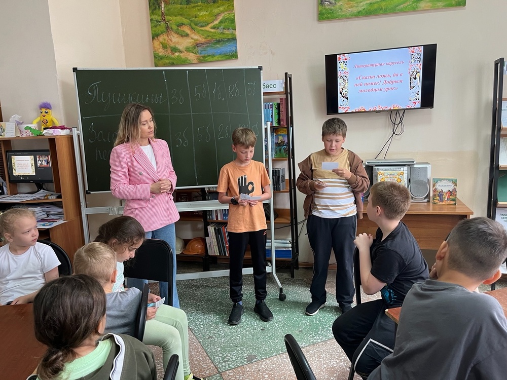 В День русского языка и День Пушкина в России юные гости Библиотеки им.Г.Е. Юрова отправились в волшебное путешествие по сказкам великого Александра Сергеевича Пушкина! Литературная карусель под названием «Сказка ложь, да в ней намёк! Добрым молодцам урок» закружила всех участников в вихре приключений! Дети вспомнили коварные планы злой мачехи, щедрость золотой рыбки и находчивость Балды. Каждый поворот карусели переносил ребят в новую сказочную локацию, где их ждали хитроумные загадки, каверзные вопросы и увлекательные задания. Было здорово наблюдать, как ребята с увлечением отвечали на вопросы и демонстрировали свою любовь к бессмертным произведениям Пушкина. Литературная карусель стала не просто развлечением, а настоящей проверкой на знание и любовь к русской литературе!