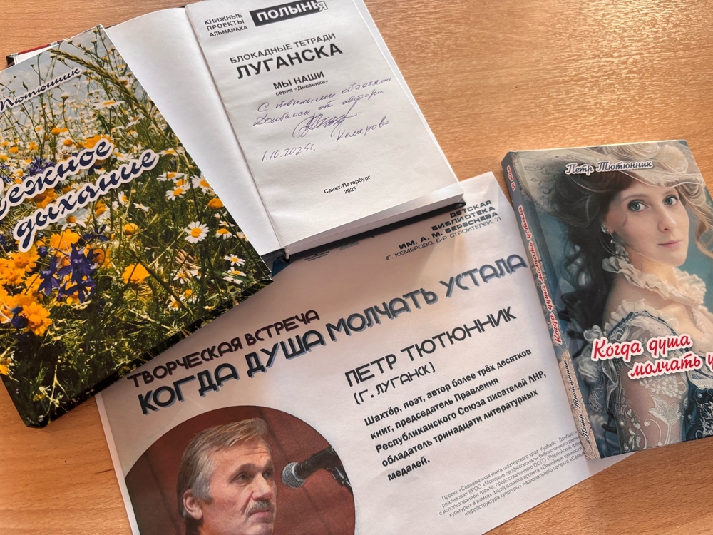 Пётр Алексеевич побывал в мемориальном кабинете поэта А. М. Береснева и в национальной комнате татарской культуры «Ак калфак». Автор подарил три свои книги — они скоро поступят в фонд библиотеки. На память о встрече в одной из них он оставил добрые слова: «С теплыми объятиями Донбасса от автора».