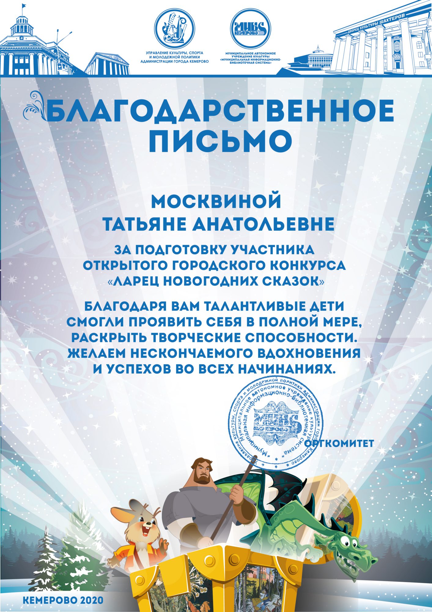 Бикузина Галина Ивановна. Творческая работа «Сказка о Кузбасской столице и новогодней ёлке»