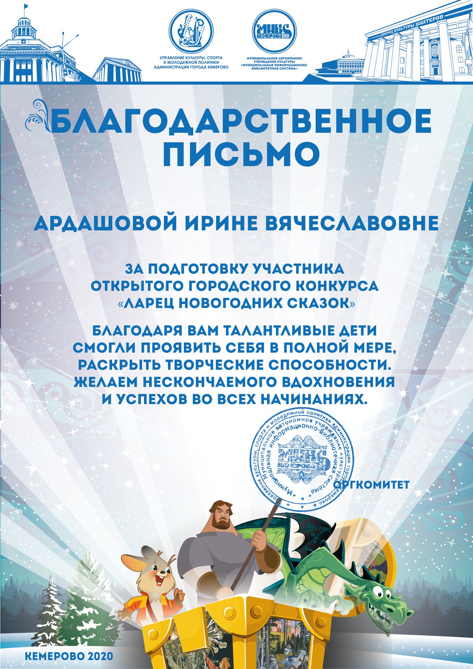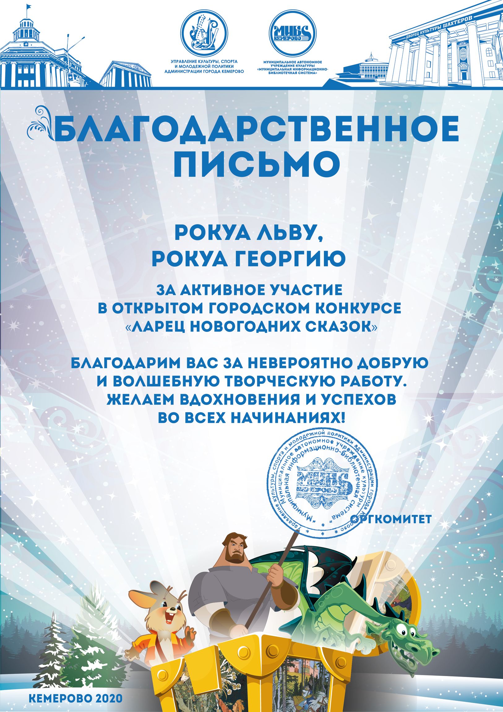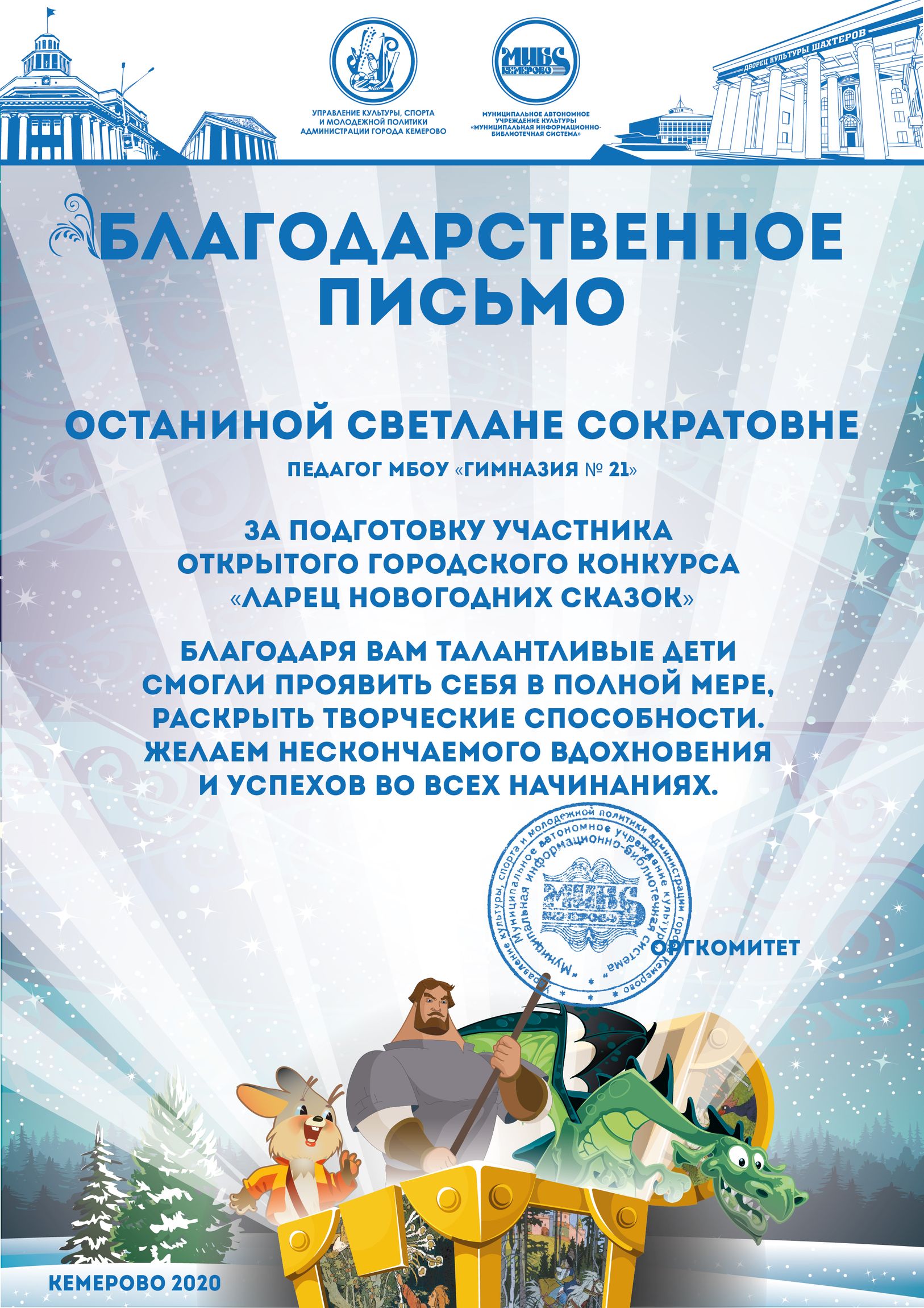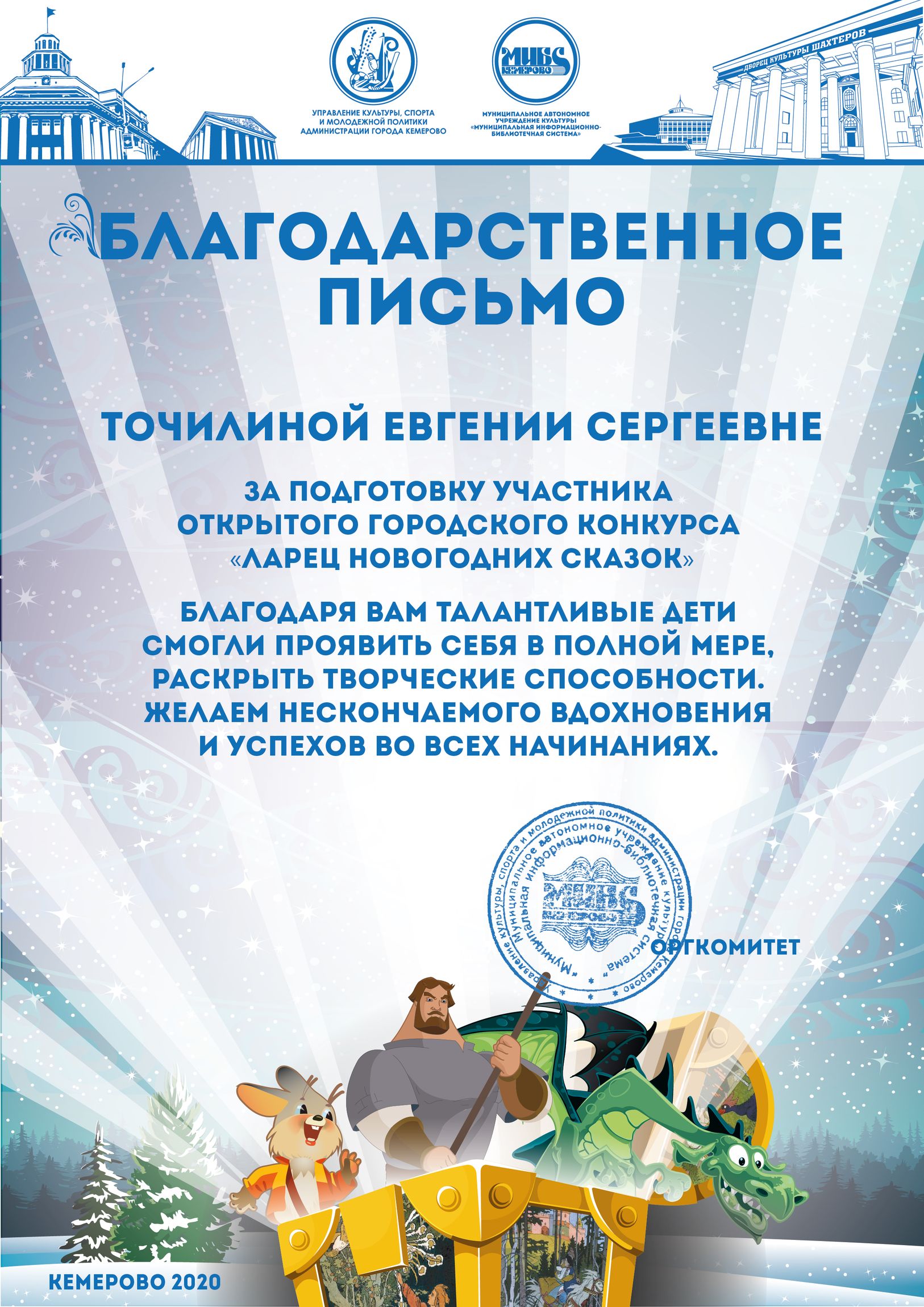 21 декабря 2020 года состоялось заседание жюри открытого городского конкурса «Ларец новогодних сказок». Были подведены итоги в детских возрастных группах. Поздравляем победителей!