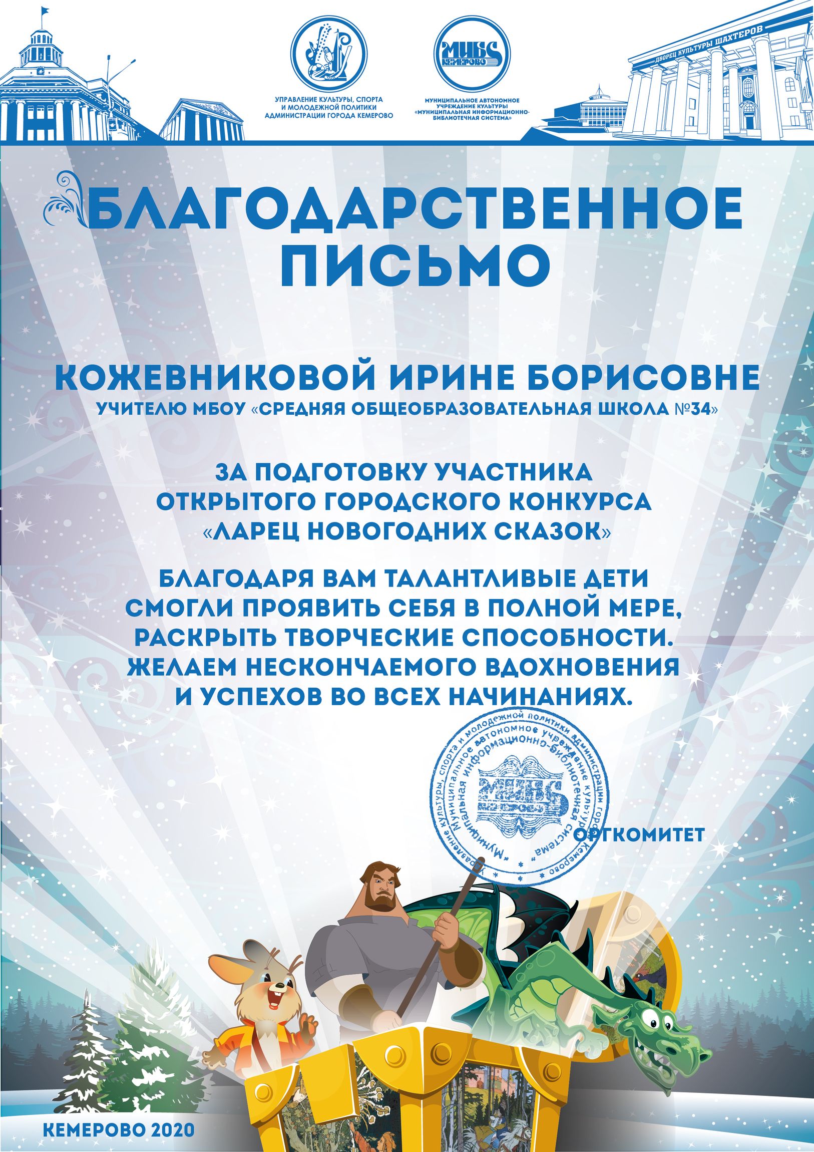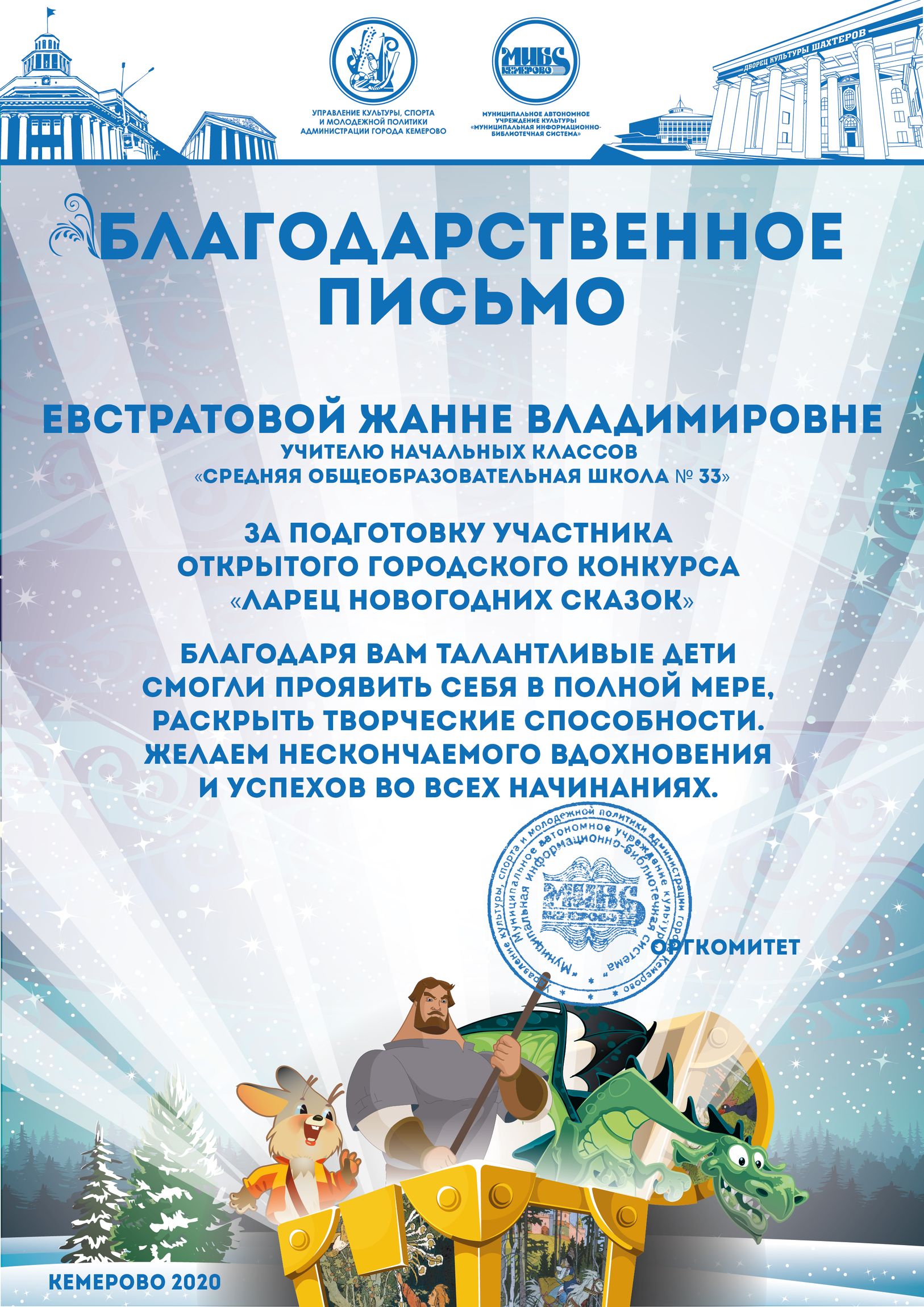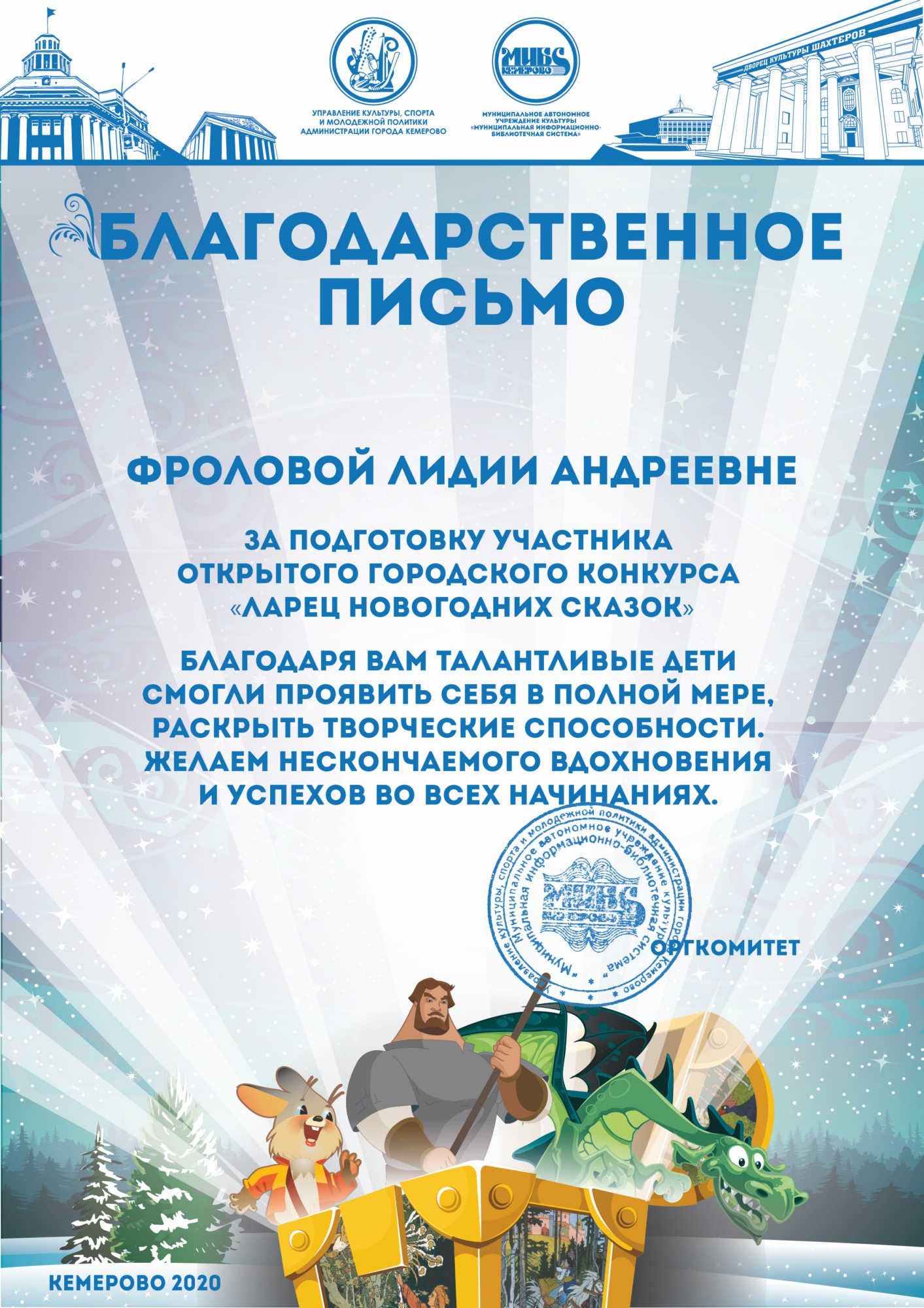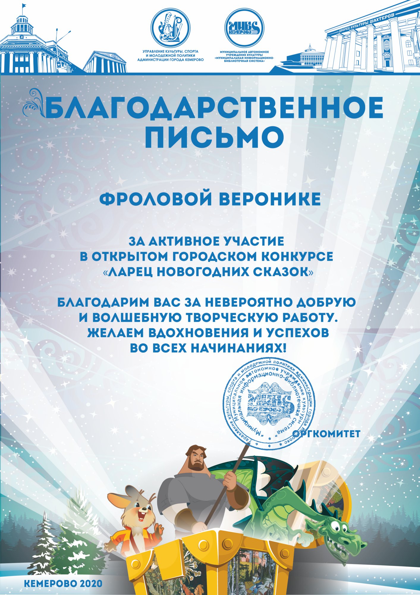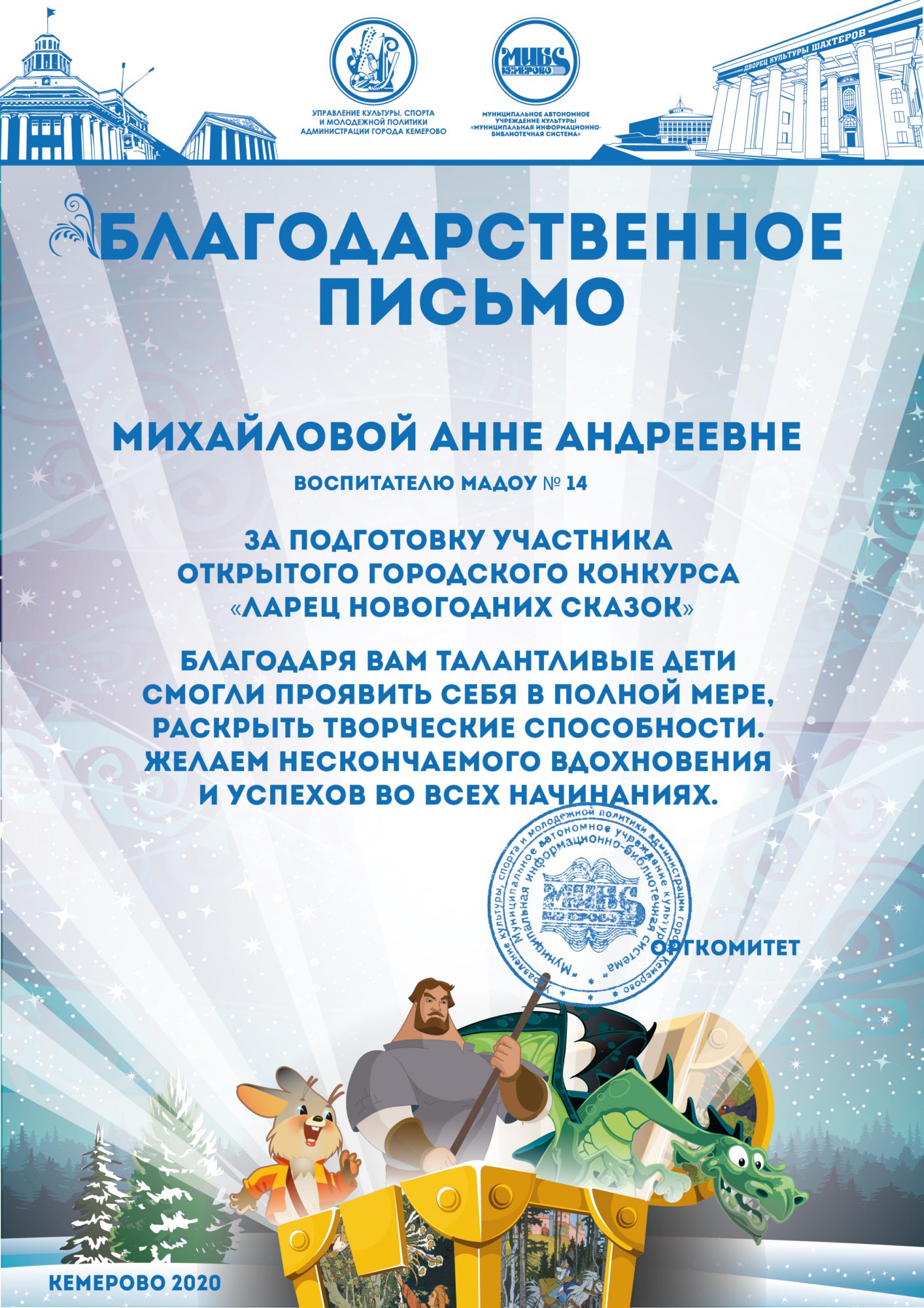 21 декабря 2020 года состоялось заседание жюри открытого городского конкурса «Ларец новогодних сказок». Были подведены итоги в детских возрастных группах. Поздравляем победителей!