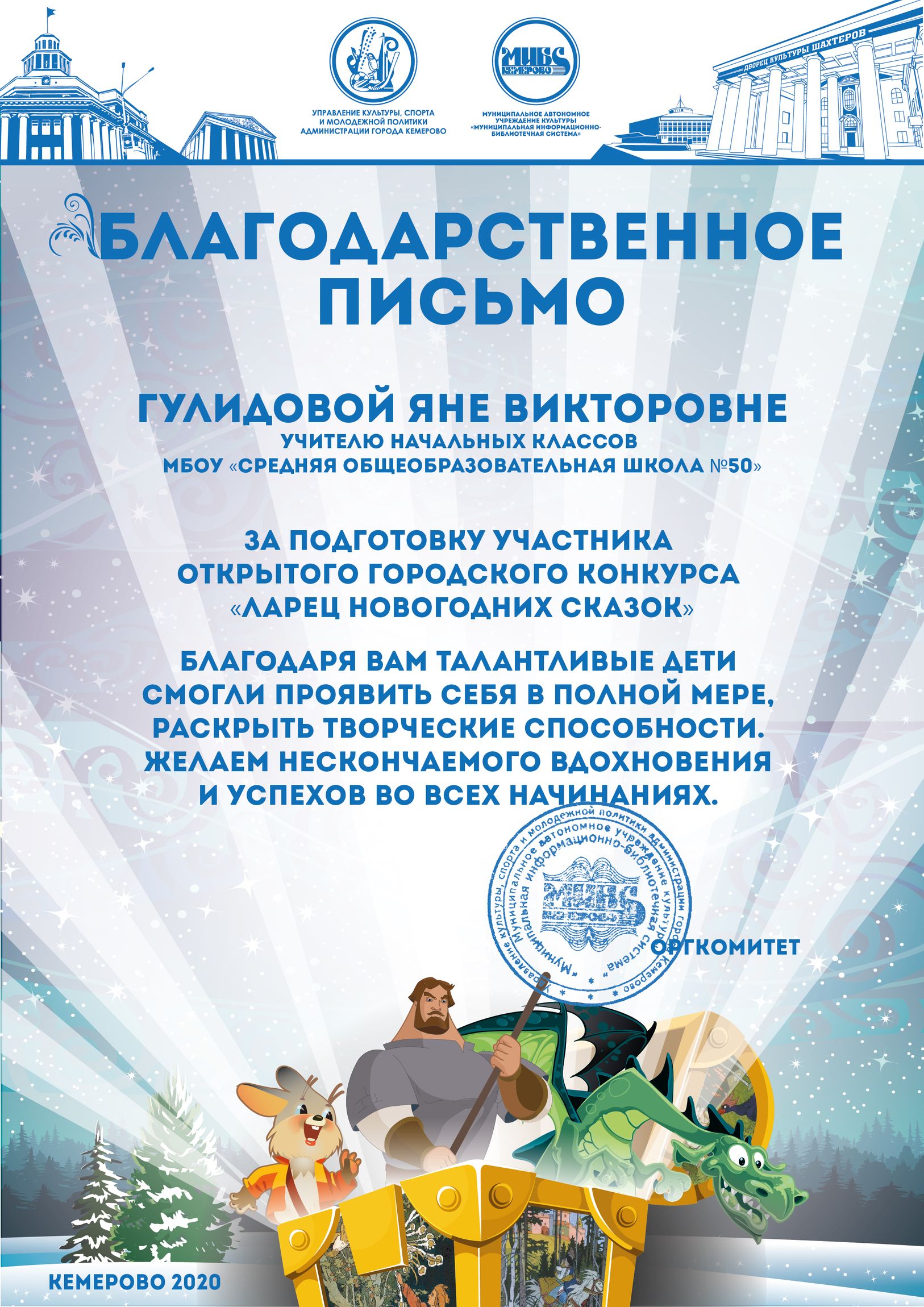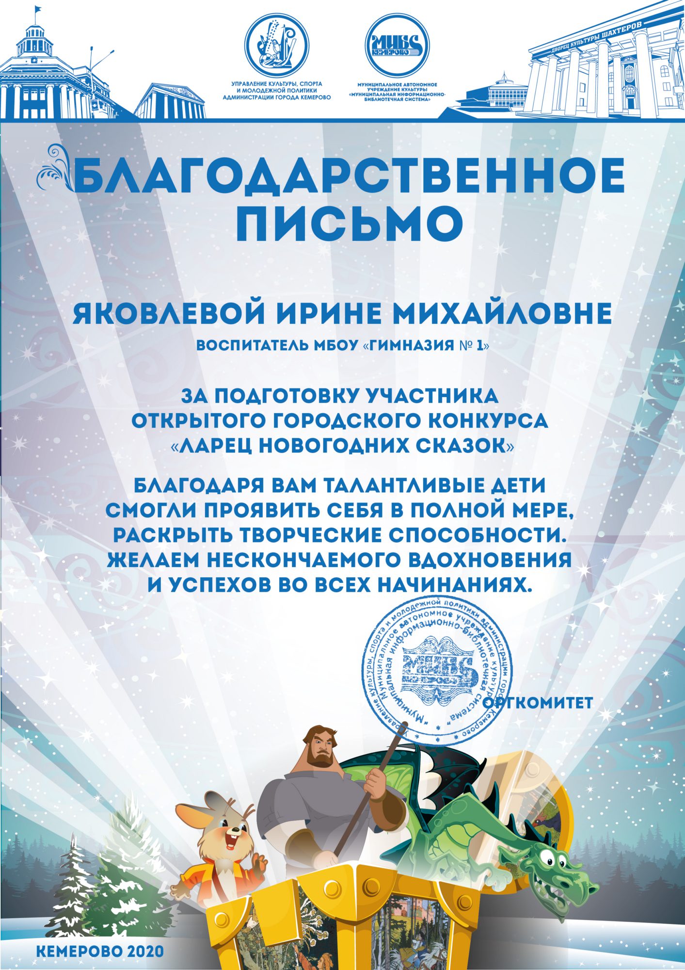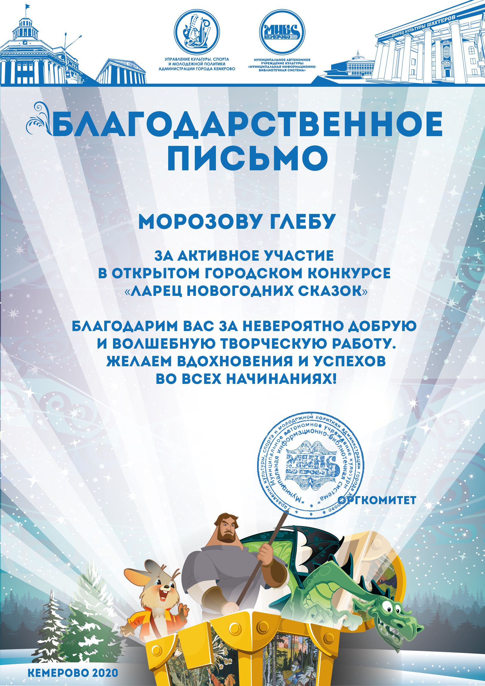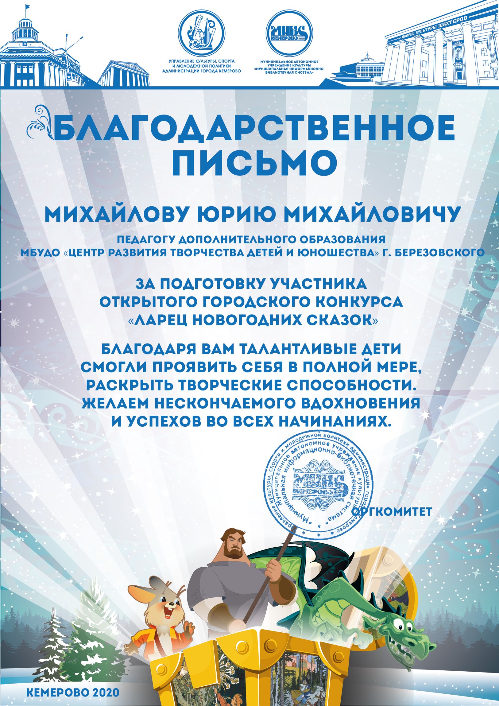 21 декабря 2020 года состоялось заседание жюри открытого городского конкурса «Ларец новогодних сказок». Были подведены итоги в детских возрастных группах. Поздравляем победителей!