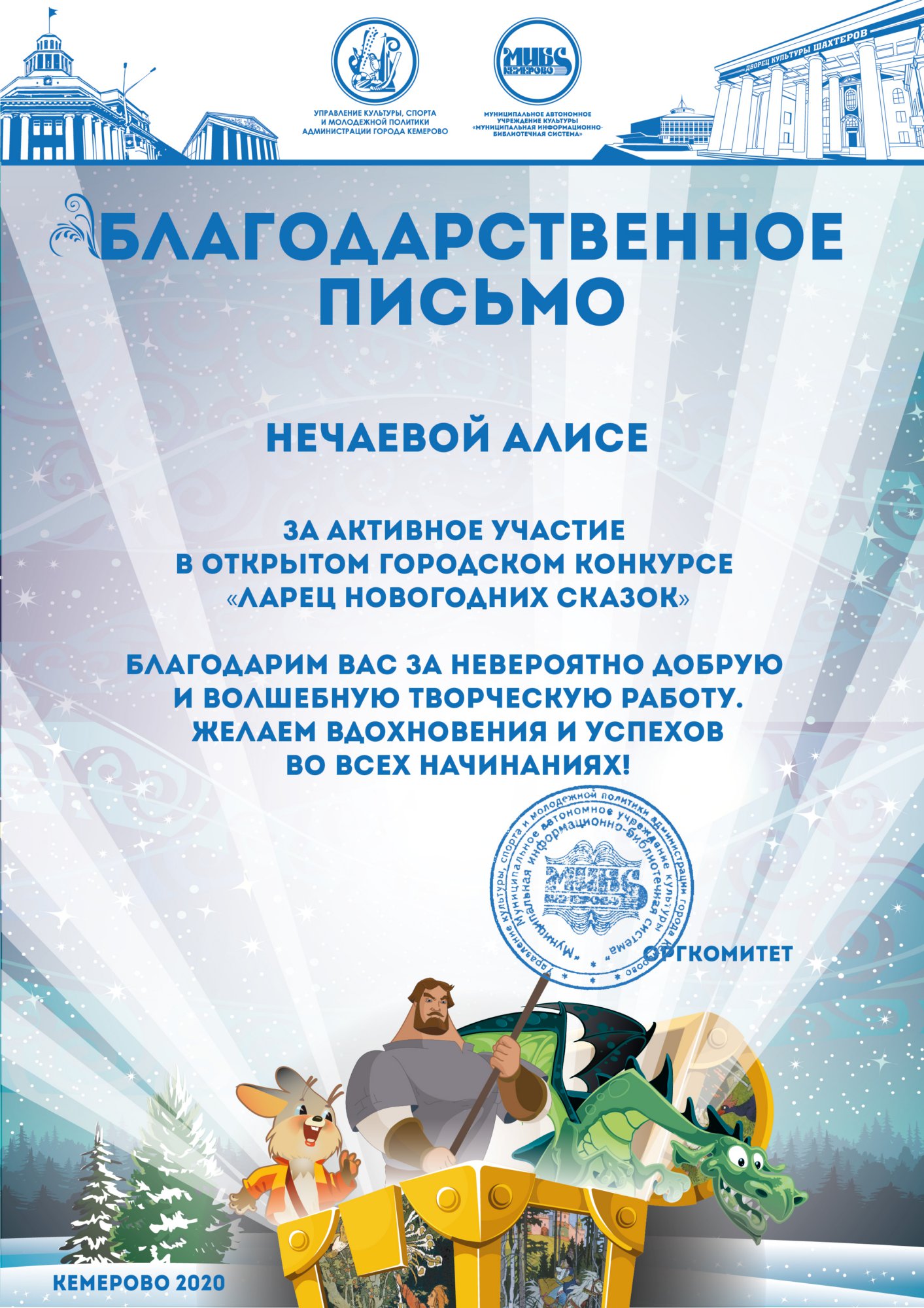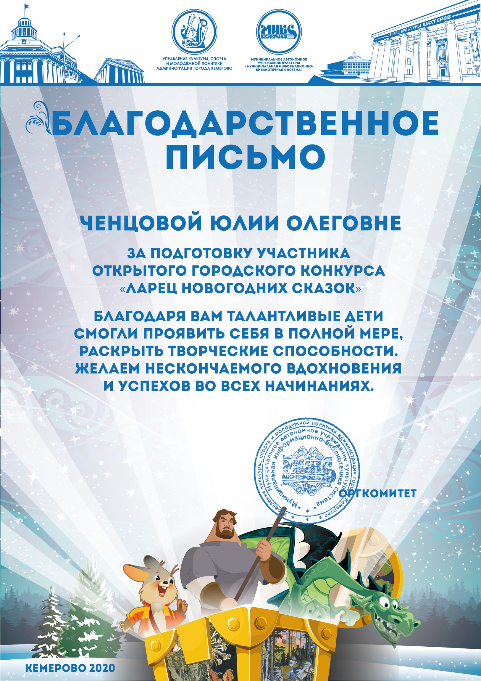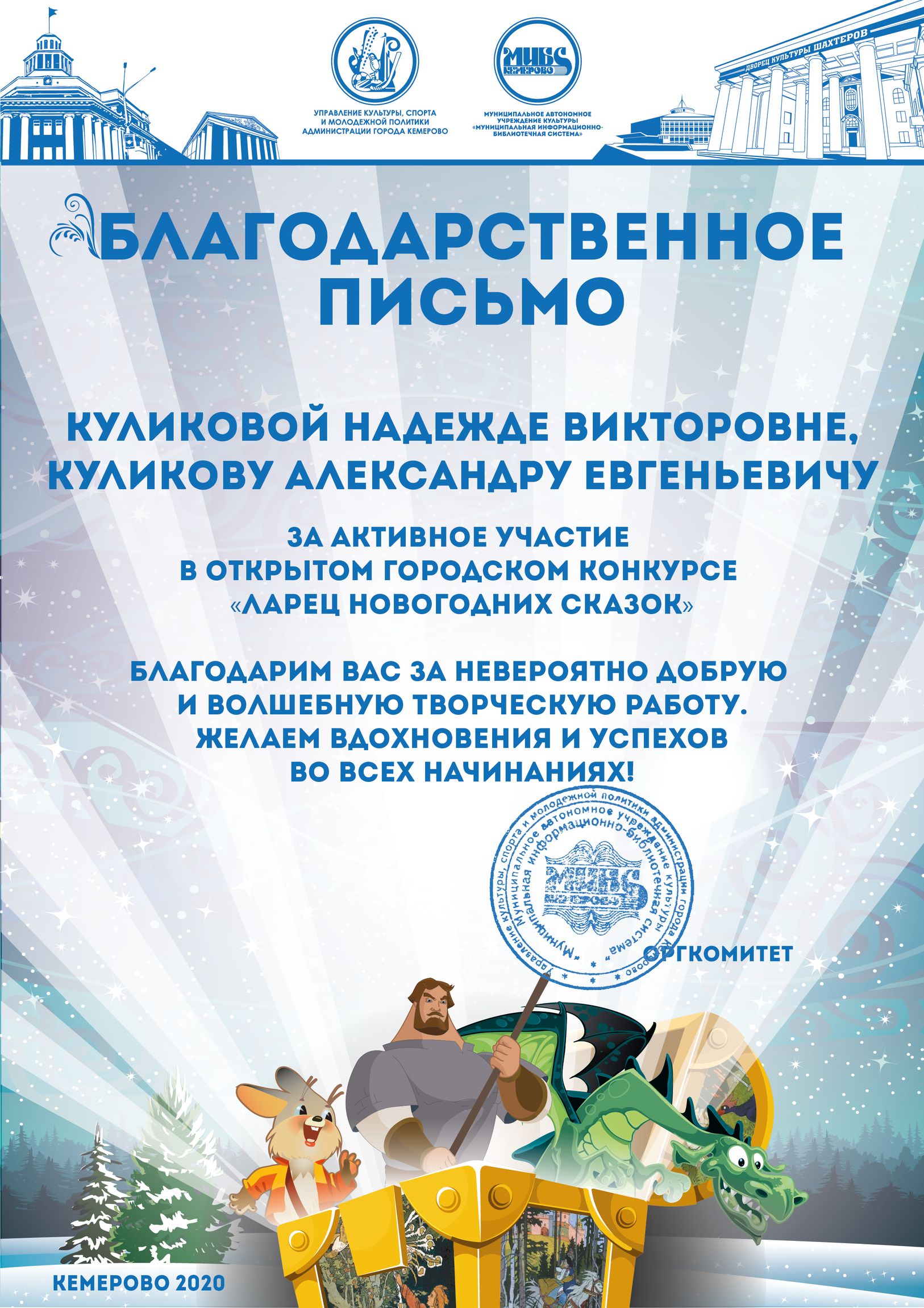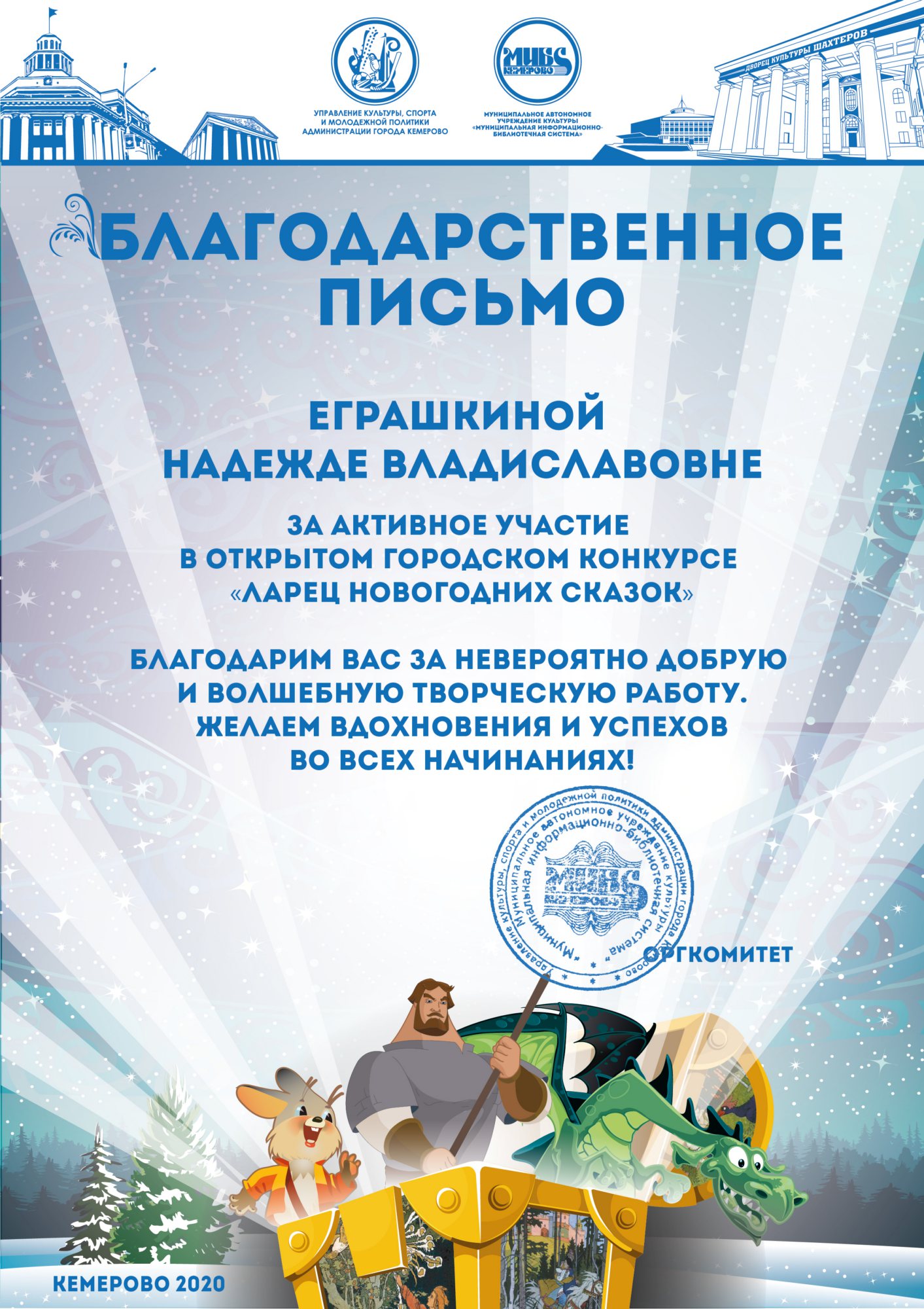 Зикункова Алена Геннадьевна, творческая работа ««Новогоднее напутствие кемеровчанина»