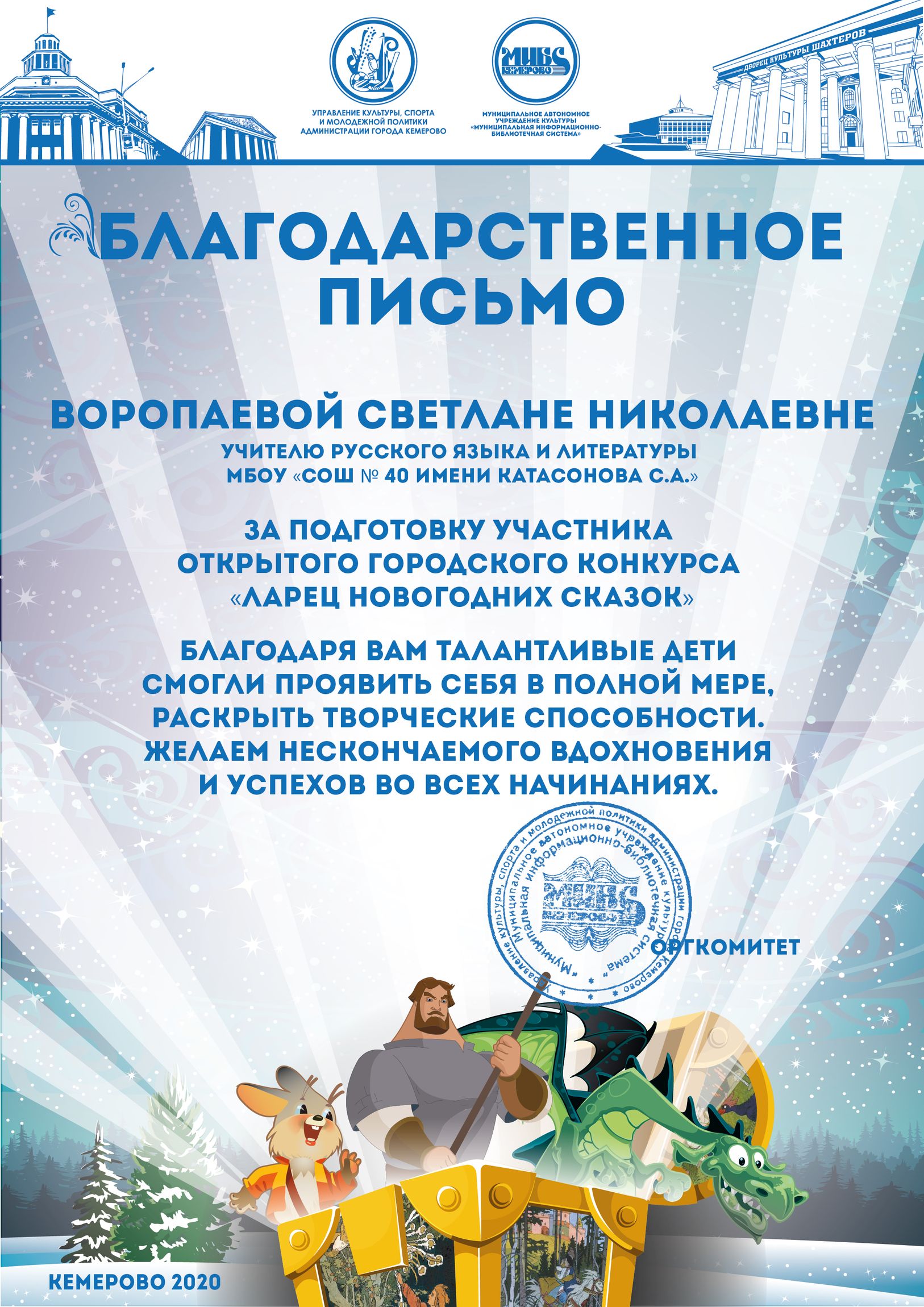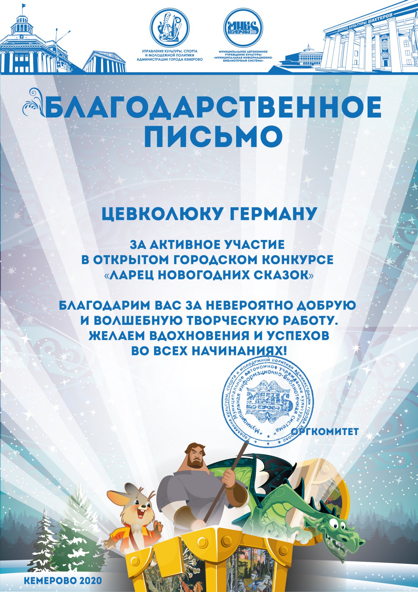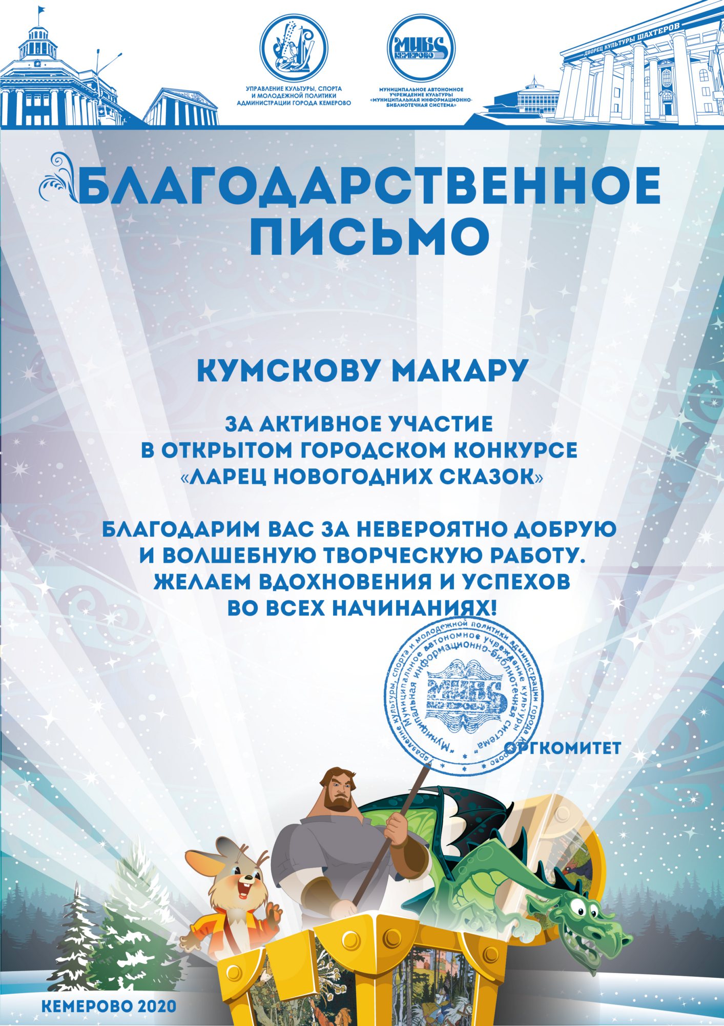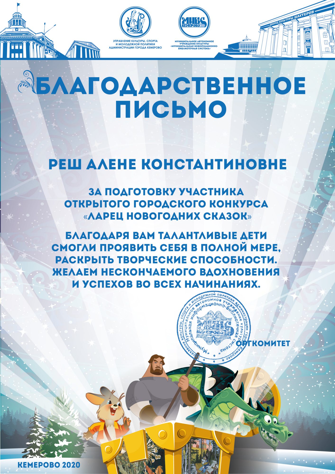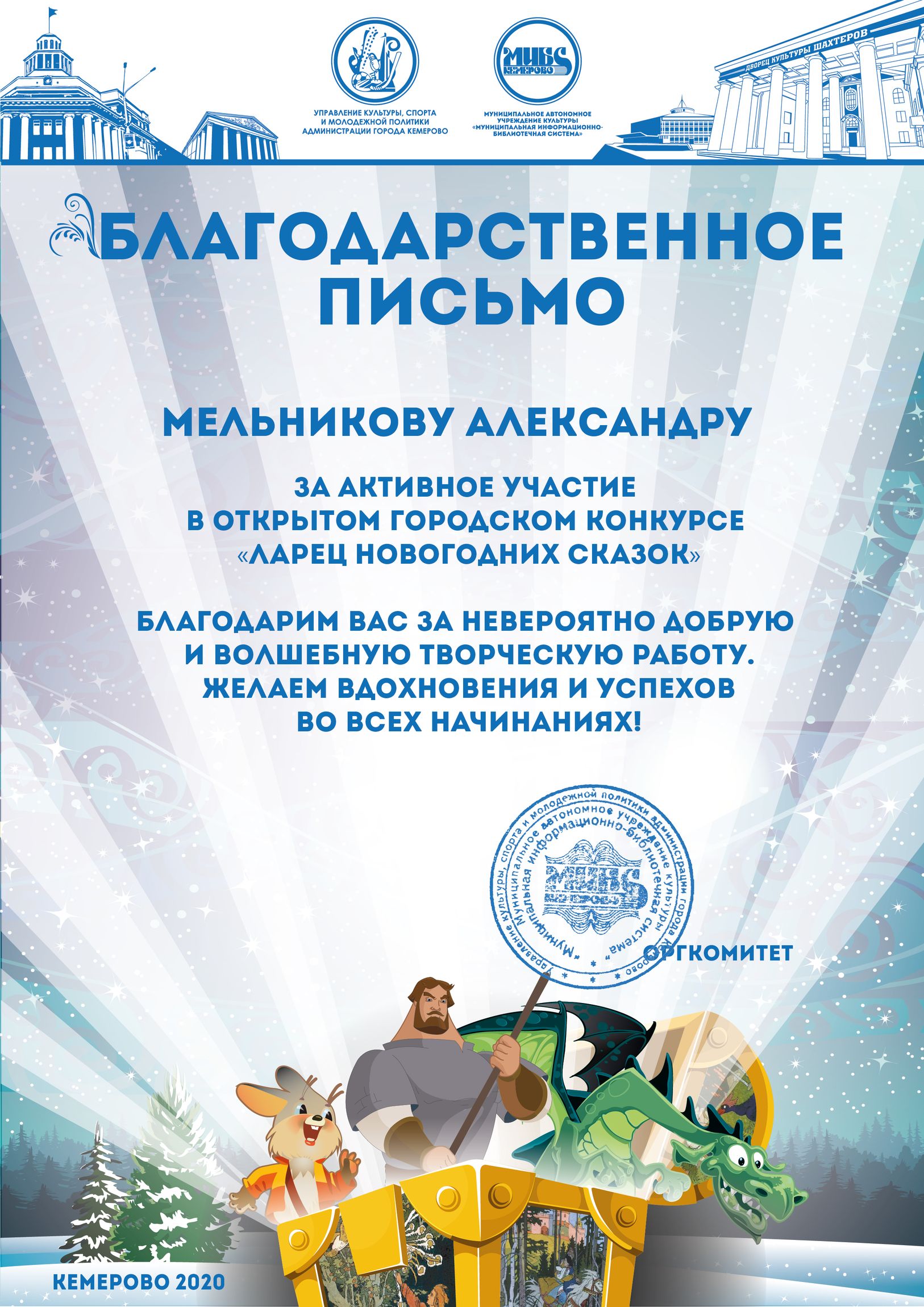 Зикункова Алена Геннадьевна, творческая работа ««Новогоднее напутствие кемеровчанина»