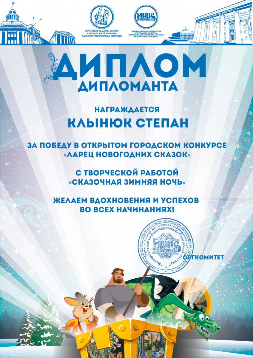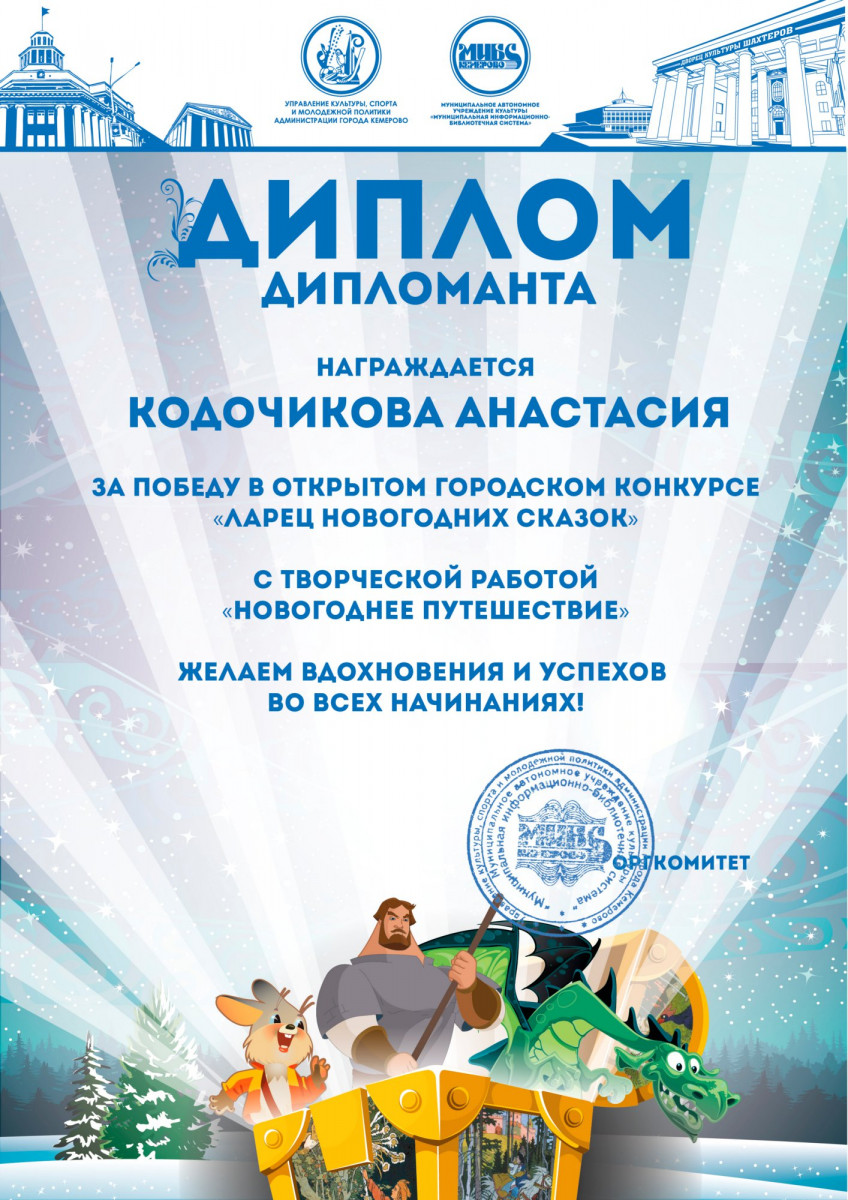 Антончикова Анастасия Денисовна. Творческая работа «Новогодняя сказка»