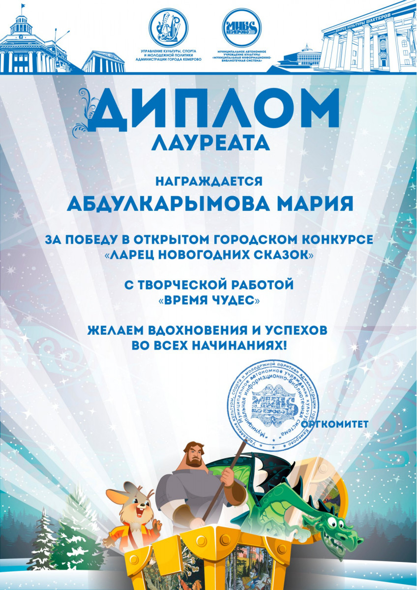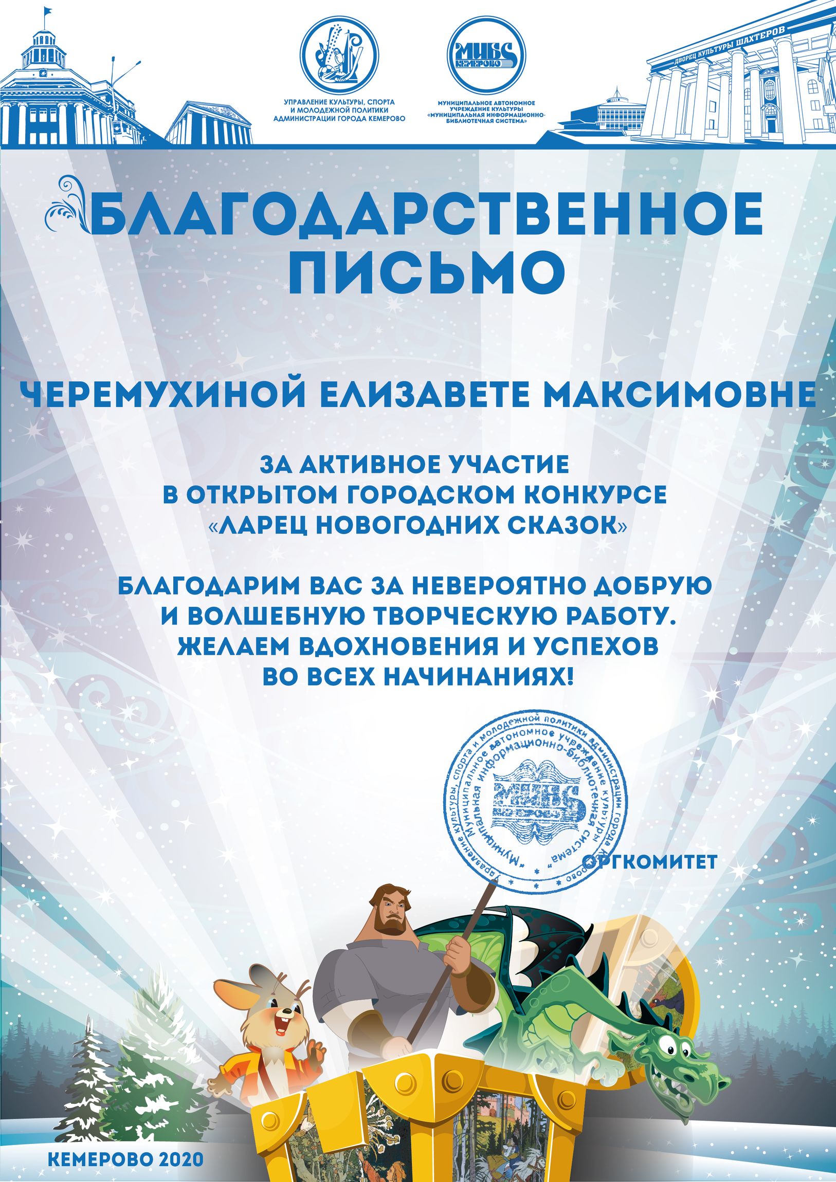 Черемухина Елизавета Максимовна. Творческая работа «В поисках ларца новогодних сказок»