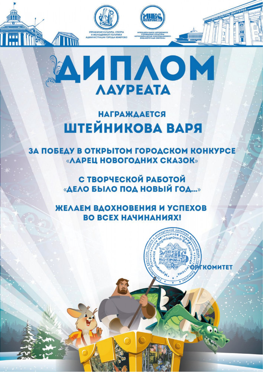Штейникова Варвара Дмитриевна. Творческая работа «Новогоднее чудо»