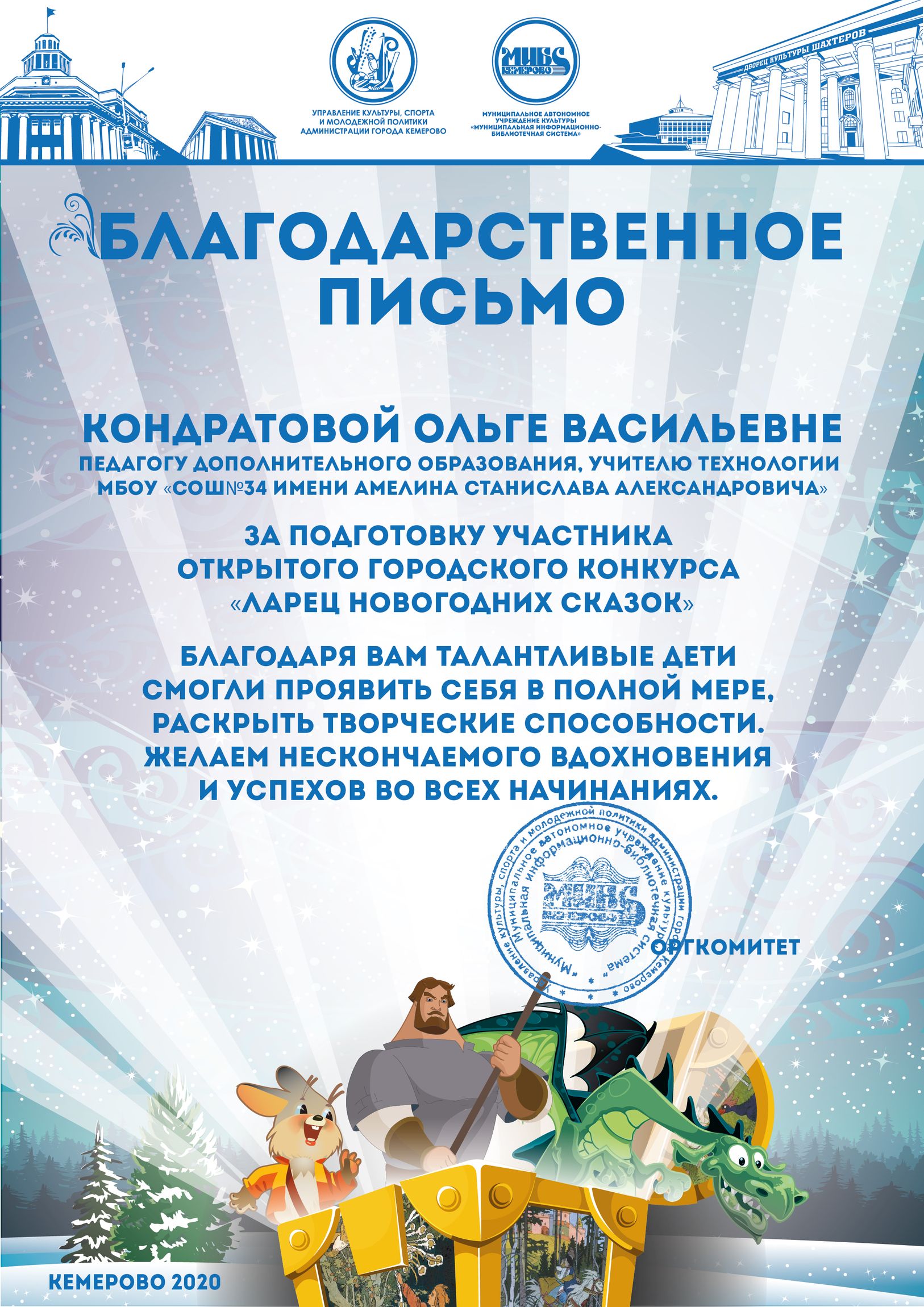 - Руководитель: Кондратова Ольга Васильевна, педагог дополнительного образования, учитель технологии МБОУ «СОШ№34 имени Амелина Станислава Александровича»