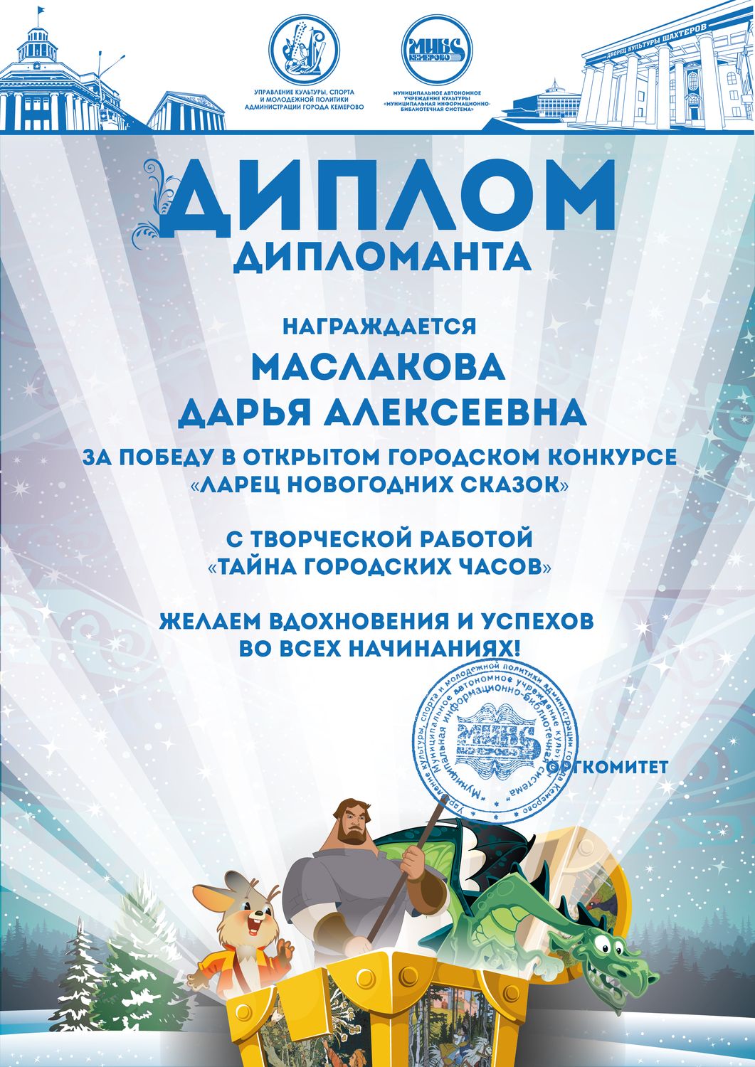 Маслакова Дарья Алексеевна. Творческая работа «Тайна городских часов»